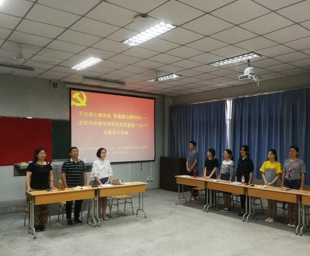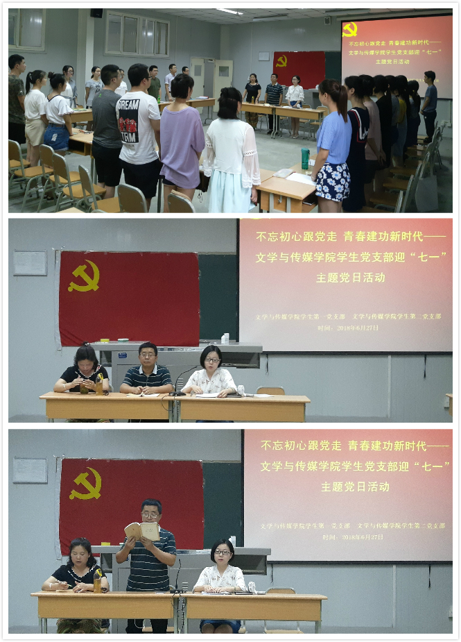 习近平总书记在党的十九大报告上深刻指出中国特色社会主义进入新时代,指出“中国梦是历史的、现实的,也是未来的;是我们这一代的,更是青年一代的。中华民族伟大复兴的中国梦终将在一代代青年的接力奋斗中变为现实”,强调“广大青年要坚定理想信念,志存高远,脚踏实地,勇做时代的弄潮儿,在实现中国梦的生动实践中放飞青春梦想,在为人民利益的不懈奋斗中书写人生华章!”今年是中国共产党建党为97周年,如何引导新时代的广大青年,不忘初心、牢记使命,顽强拼搏、奋勇担当,书写无愧于历史和时代的青春篇章。1683168 3诸侯快讯入口学生第一党支部、学生第二党支部于2018年6月27日下午在1017教室联合举办 “不忘初心跟党走,青春建功新时代”——迎七一主题党日活动。1683168 3诸侯快讯入口学生第一党支部书记邹棠华、学生第二党支部书记沈菲、辅导员艾全霞,全体学生党员、入党积极分子参加本次活动。本次活动由沈菲主持。
