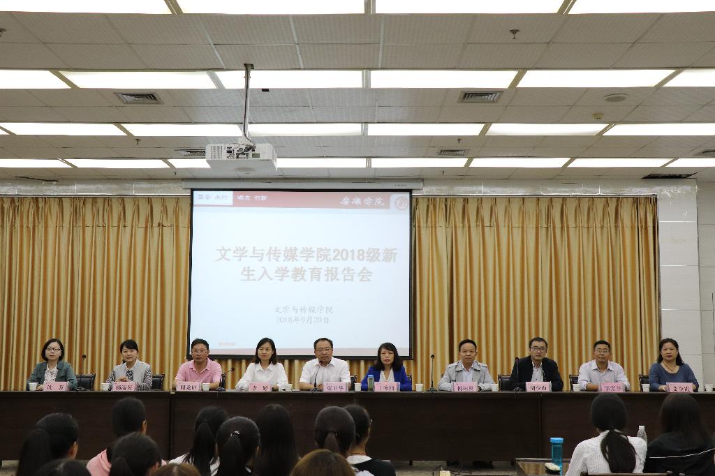 金秋九月,桂花飘香。2018年9月20日晚7点30分,1683168 3诸侯快讯入口在图书馆六楼报告厅举办2018级新生见面会暨入学教育讲座第一讲。1683168 3诸侯快讯入口院长、党总支副书记戴承元因公出差未能参加,党总支书记、副院长于咏梅,副院长梁卫华、杨运庚,汉语言文学系系主任李婷,语文公共教研室主任周龙田,秘书与新媒体系主任胡少山,党政办公室主任杨海蓉,学工办主任沈菲,辅导员邹棠华、艾全霞和2018级全体新生参加。见面会及讲座由梁卫华主持。