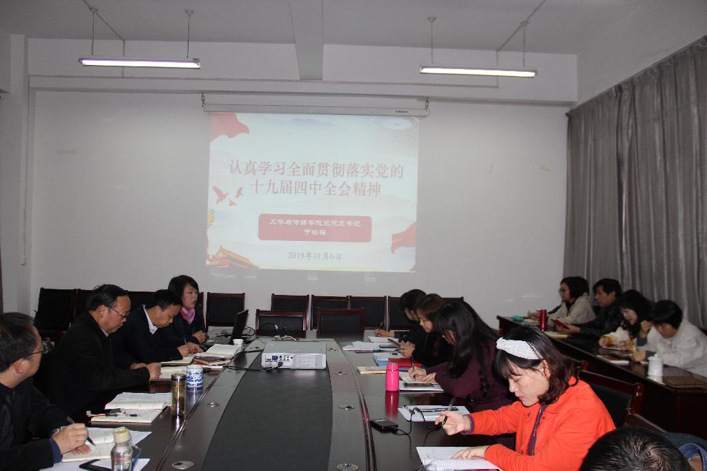 11月6日下午,1683168 3诸侯快讯入口党总支召开学习传达党的十九届四中全会精神专题会议,全体教师参加会议。