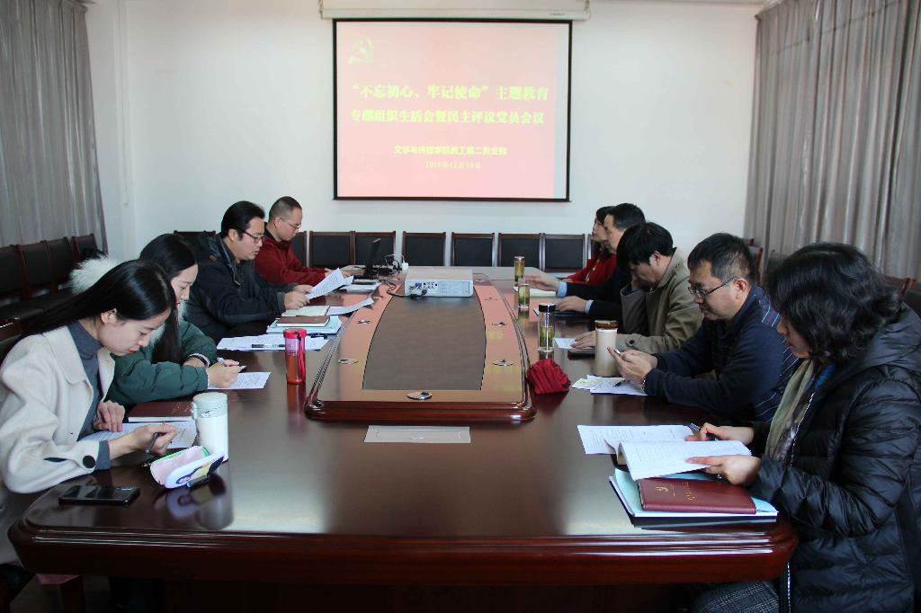 12月10日下午,1683168 3诸侯快讯入口教工第二党支部在陕南民间文化研究中心会议室召开“不忘初心、牢记使命”主题教育专题组织生活会暨党员民主评议大会,党支部教师参加会议,党委书记王国良作为普通党员全程参与会议,会议由教工第二党支部书记杨明贵主持。