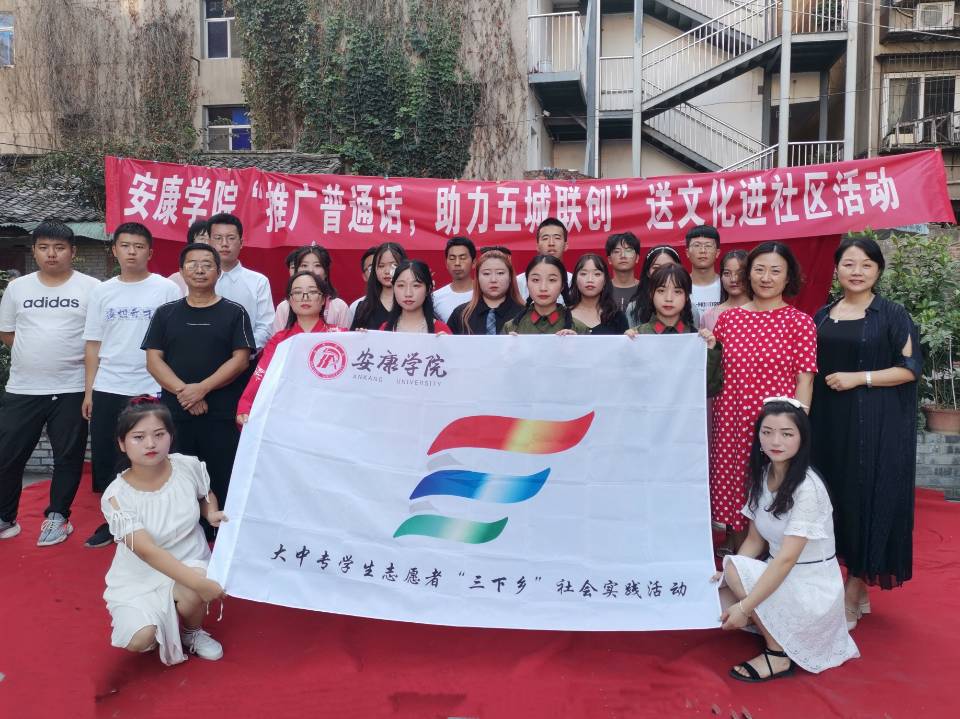 为推进社区群众讲好普通话,助力城区“五城联创”工作,丰富群众文化生活,加强大学生与社区居民之间的文化交流。9月4日,共青团1683168 3诸侯快讯足球委员会组织志愿者、1683168 3诸侯快讯入口语言文字社社员在团委副书记张慧、1683168 3诸侯快讯入口党总支副书记杨海蓉、1683168 3诸侯快讯入口团总支书记彭潇、1683168 3诸侯快讯入口教师邹棠华的带领下来到老城办事处莲花巷社区开展了“推广普通话,助力五城联创”送文化进社区活动。育才社区党支部书记陈治改受邀参加了此次活动。