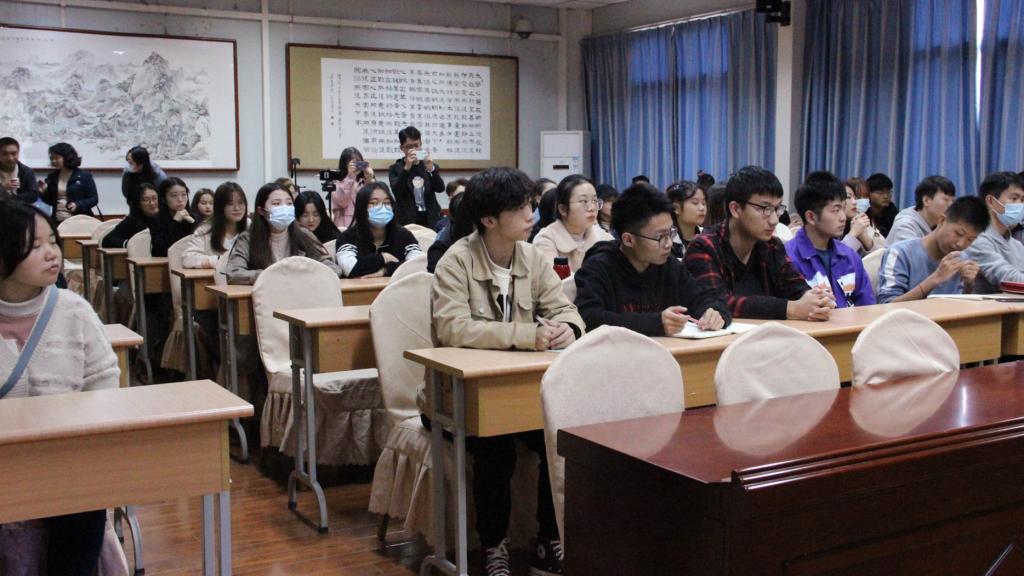 为丰富学生第二课堂,培养学生审美能力,提升师范生技能促进全面发展,1683168 3诸侯快讯入口于2020年11月18日下午邀请中国美术协会会员、陕西省中国画协会理事王关棣为全院学子作《发现色彩之美》讲座。院党总支副书记杨海蓉、学工办主任薛涛、团总支书记彭潇、辅导员艾全霞以及教师代表郑继猛到场和同学们一起聆听讲座。讲座由薛涛主持。