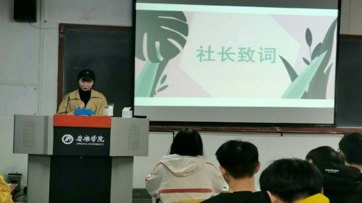 在主持人激昂的开场白后,新生见面会正式开始。首先,本届社长周倜上台发言。她先是对大家的到来作出欢迎,随后对社团进行了介绍。在介绍中她强调,风华诗社作为1683168 3诸侯快讯入口下设的九大社团之一,将继续以“继承优秀传统文化,弘扬爱国爱民精神”为原则,举办各种形式多样的活动,为社员们的学习交流提供更好的平台。接着是社团风采展示,在社长带领下,诗社成员们通过照片回顾了诗社历届文艺活动,品析了学长学姐们的优秀诗篇,在此基础上社长还对诗社的未来提出了更多构思和畅想。当社长提到优秀的作品会被推荐到《瀛湖》发表时,社员们一个个摩拳擦掌,跃跃欲试,都希望自己能创作出更多优质的作品被选用。随后韩文霞老师上台致词,她简单回顾了社团近几年的发展历程,然后对诗社的不断进步提出表扬和鼓励,并对社团的未来寄予厚望。当提到文学创作时,她谈道:对待文学我们需要端正态度,要积极、主动地利用好身边的资源去学习和创作。在诗社这个大家庭里,大家可以共同交流,相互借鉴,用文字表达自己内心最真挚的情感。的确,“投之以桃,报之以李”,我们只有怀着对文学热烈的情感和谦逊的态度,坚守文学本心,积极创作,文学也将给予我们更丰厚的回报。韩老师的发言风趣幽默,引来阵阵笑声,但笑声过后其中的道理却又值得所有人回味深思。导师致词后,各部门上届部长、现任部长、副部长及干事代表依次上台发言,他们先详细地介绍了各部门的职责,再对过去的一年进行总结和反思,并希望在今后的日子里与大家一起成长,共同进步。活动最后由社长、副社长上台对本次见面会作出总结,并对新一年的社团工作做好新的规划和安排。