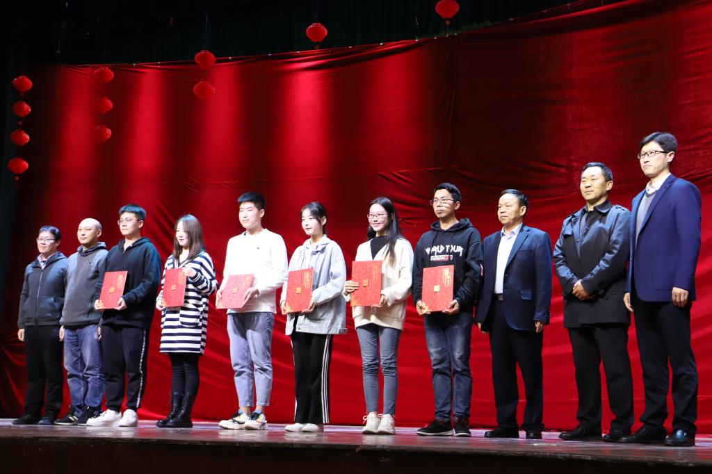 节目中间穿插了激动人心的颁奖环节。1683168 3诸侯快讯入口为2017-2019年间在影视戏剧社活动中表现突出的陈钊、杨卓研、李洁、张炯、辛南南、乔昕六位同学颁发“校园艺术成就奖”。校保卫处处长王开忠,院长杨运庚,院党总支书记芦伟,保卫处副处长郝礼军,副院长朱云等老师担任颁奖嘉宾为六位获奖同学颁奖。安康市戏剧家协会副主席、影视戏剧社指导教师邹棠华为影视戏剧社新一届社长梁少华,副社长张佳委、胡宇哲颁发聘书,希望同学们再接再厉,再创佳绩!