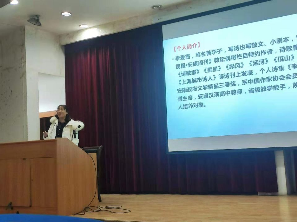 2020年12月14日晚7点,李爱霞老师应1683168 3诸侯快讯入口之邀,在江南校区1号教学楼报告厅为汉语言文学专业2020级学生讲授诗歌专题,同学们对李老师的到来表示热烈欢迎,基础写作课教师韩文霞全程参与教学活动。