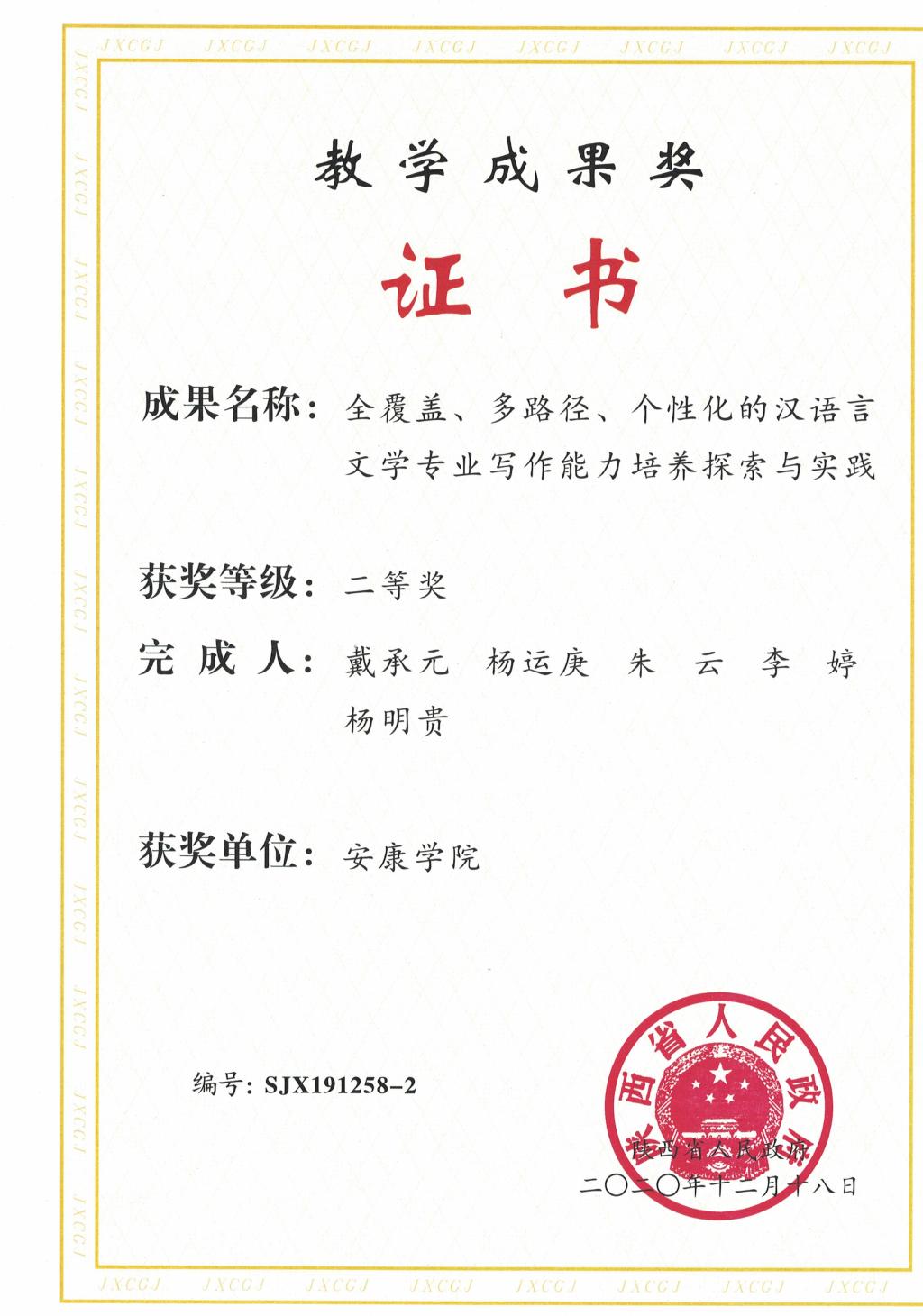 导航痕迹 首页 > 新闻通知 > 学院新闻 > 正文 学院新闻 通知公告 喜报!诸侯快讯荣获2019年陕西省高等教育教学成果奖一项 发布人:1683168 3诸侯快讯入口 发布日期:2021年01月15日 阅读次数: 近日,陕西省人民政府办公厅下发了《关于表彰2019年高等教育教学成果奖获奖项目的通报》,诸侯快讯戴承元、杨运庚、朱云、李婷、杨明贵团队完成的《全覆盖、多路径、个性化的汉语言文学专业写作能力培养探索与实践》教学成果荣获二等奖。 陕西省教学成果奖每两年评选一次,是陕西省高等教育领域中最高层次的奖励。此次荣誉与诸侯快讯长期强化学生写作能力培养的实践探索和所取得的功效密不可分。诸侯快讯将以此次获奖为契机,加强教学成果的宣传、推广和应用,发挥教学成果在提高人才培养质量上的引领、示范和辐射作用,牢固树立教学工作中心地位,深化教育教学综合改革,提升学生应用能力,为1683168 3诸侯快讯入口进一步深化内涵发展提供强力支撑。 撰稿/杨运庚 发布/崔瑜