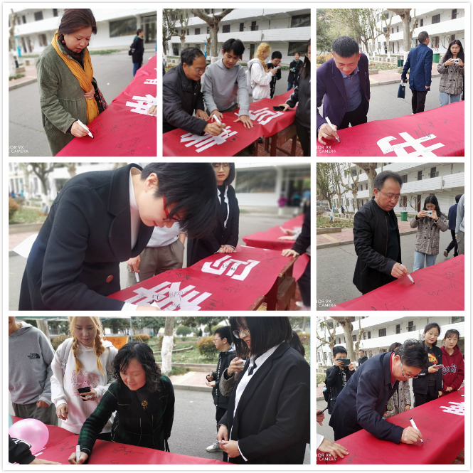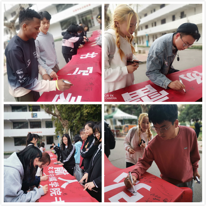 活动开始之前,书法社的社长讲解了此次活动的目的以及雷锋精神。书法社成员在横幅上写下了自己的名字,对此次活动进行宣传与号召。在他们的鼓励下许多师生都前来签名并且留影。希望大家可以在书写中重温雷锋精神;在笔墨中晕染奉献光芒;在行动中传播精神文明。学习雷锋精神,树立社会新风。