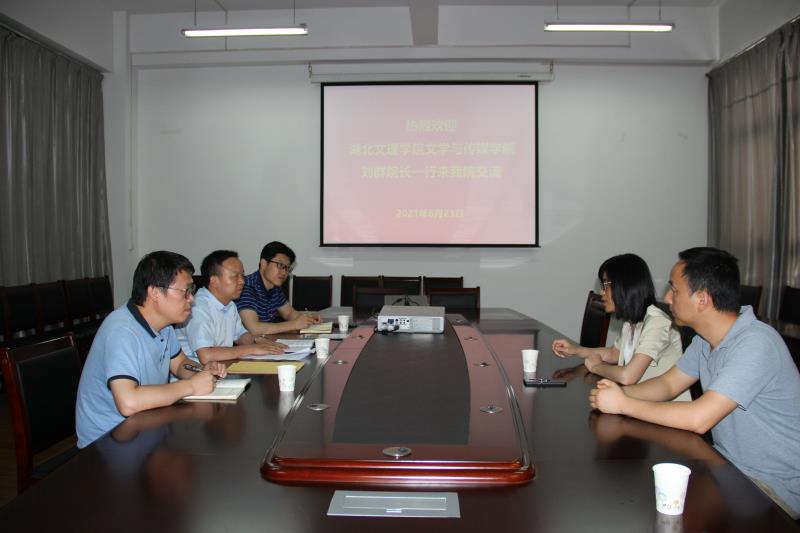 2021年6月24日,湖北文理学院1683168 3诸侯快讯入口刘群院长一行来诸侯快讯访问交流。1683168 3诸侯快讯入口院长杨运庚、党总支书记芦伟、副院长朱云在陕南民间文化研究中心会议室与来访人员进行了座谈交流。