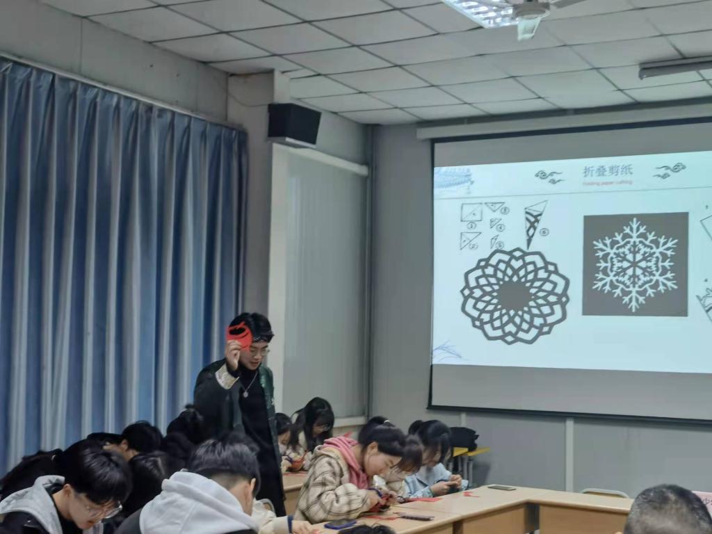 通过讲座学生们首先了解到了剪纸是一种镂空艺术和最为流行的民间艺术,在视觉上给人以透空的感觉和艺术享受。之后也了解到了耳闻,目见,足践,手辨四大剪纸内容。通过主讲人梁少华所播放视频学生们也明白了剪纸的特点。