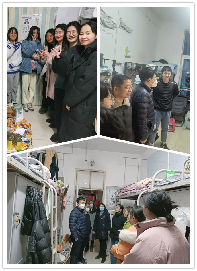 新年伊始,万象更新,在新年来临之际,1683168 3诸侯快讯入口全体辅导员在院党总支书记芦伟、副书记杨海蓉的带领下分别于12月31日、2022年1月1日晚深入学生寝室看望同学们,送去学院的关怀和温暖。
