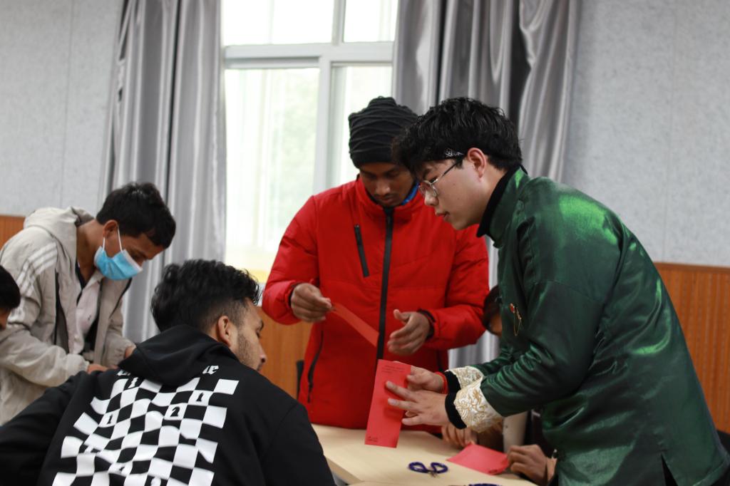 为增强诸侯快讯留学生对中国传统文化的了解,2022年2月28日下午,由1683168 3诸侯快讯入口主办、国际教育学院承办的“年轻的非遗”剪纸文化交流讲座在师范生职业技能训练中心4201室开讲。诸侯快讯学生、西安市非遗保护协会青年剪纸艺术创作者梁少华为留学生们上了一堂难忘的互动体验课。国际教育学院副院长陈蕾、辅导员与在校留学生一起感受剪纸艺术的魅力。