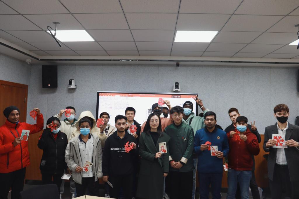 梁少华向同学们介绍了中国剪纸的基本知识和剪制方法,分享了自己所创作的部分作品。简洁的语言及双语版的课件让留学生们对剪纸文化的知识更加清晰的了解,留学生们都听得十分认真,整场讲座欢声笑语不断。