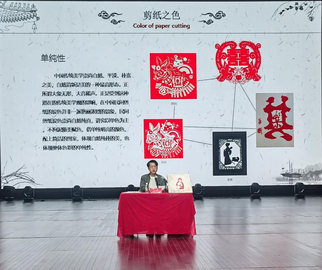 活动伊始,梁少华用纪录短片,将大家引入剪纸的世界,核心着眼于当代年轻人对非遗传承的新理念和新认知,希望广大文化传播者和非遗传承人一起分享非遗故事。随后,梁少华以美学作为基本理论构架,通过对中国民间剪纸表象的感官渲染、符号的寓意传达、形意生动交融意境美的浅析,娓娓述说中国民间剪纸所蕴含的美学价值。