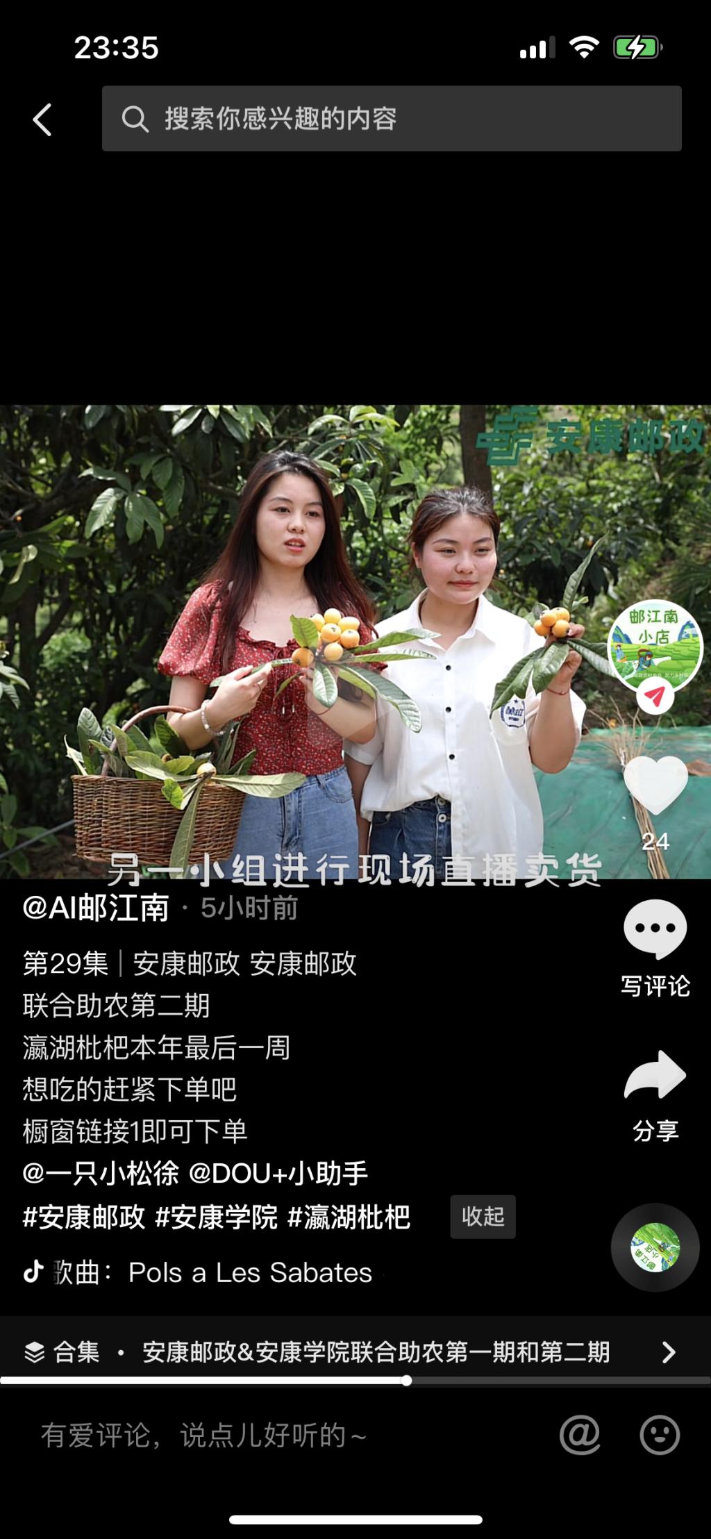 学生实习、见习更加强调融入地方经济文化建设,助力地方经济文化推广宣传,力求在真实工作环境中锤炼专业实践能力。本年度网络与新媒体专业学生通过专业见习1、采风实训等课程为安康汉滨区香溪洞景区旅游形象宣传拍摄多部宣传片。通过专业见习2与安康邮政江南分局成立校外直播实践基地,参与瀛湖枇杷推广项目策划、媒体运营、电商直播等实践活动,推广短视频作品70部,制作出的视频均已上传至邮政官方抖音账号Ai邮江南以及Ai邮安康,目前在线直播点击量已超过6万。