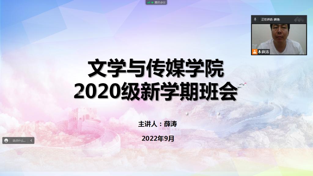 2020级辅导员辅导员薛涛分别从新学期大家状态调整、疫情防控、防范电信诈骗、文明上网等方面进行宣传引导,对《1683168 3诸侯快讯入口“中学语文卓越师资班”人才培养计划行动方案(试行)》文件进行解读,解答教师资格证报名考试相关问题,并就线上教学向全体同学提出纪律要求。