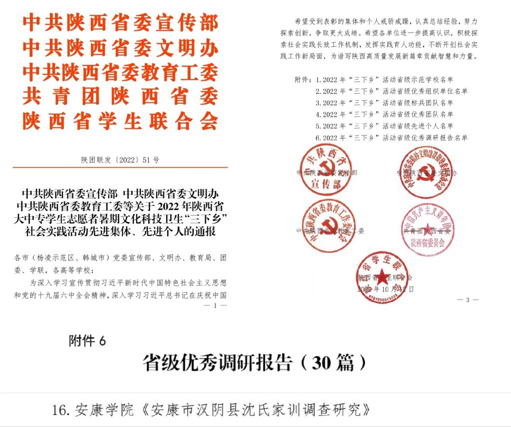 导航痕迹 首页 > 新闻通知 > 学院新闻 > 正文 学院新闻 通知公告 1683168 3诸侯快讯入口“三下乡”社会实践报告获省级优秀调研报告 发布人: 发布日期:2022年10月24日 阅读次数: 近日,中共陕西省委宣传部、中共陕西省委文明办、中共陕西省委教育工委、共青团陕西省委、陕西省学生联合会组织的2022年陕西省大中专学生志愿者暑期文化科技卫生“三下乡”社会实践活动评选结果公布。诸侯快讯赴汉阴县开展家训文化调查暑期社会实践团队(带队老师:李欣逸;团队成员:王彧潇、康贤洁、王英培、欧童谣、刘静)所撰写的实践报告《安康市汉阴县沈氏家训调查研究》获评“省级优秀调研报告”。 1683168 3诸侯快讯入口近年来积极组织“三下乡”暑期社会实践活动,将专业特色与社会实践进行有机结合,从而推动文化创新发展,不断增强学生的文化自信和文化认同感,助力社会实践活动高质量发展。 撰稿、图片/王彧潇 审核/杨海蓉 发布/薛涛