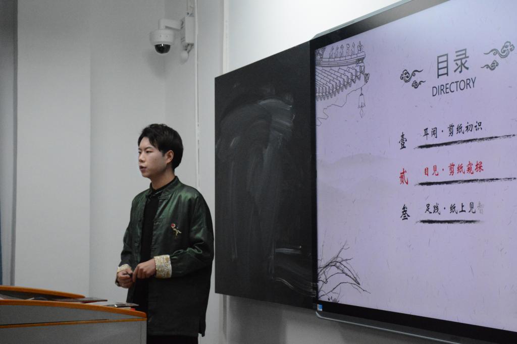 梁少华分别从剪纸的意象、表象和形象三个方面作了阐述,参与讲座的新生也在一幅幅精美的作品中加深了对剪纸的认知。在互动体验环节,同学们都积极地拿起剪刀,尝试剪出自己的剪纸首作,同学们相互交流并顺利完成各自的作品,一幅幅展示的作品带着喜悦将现场气氛推向高潮。