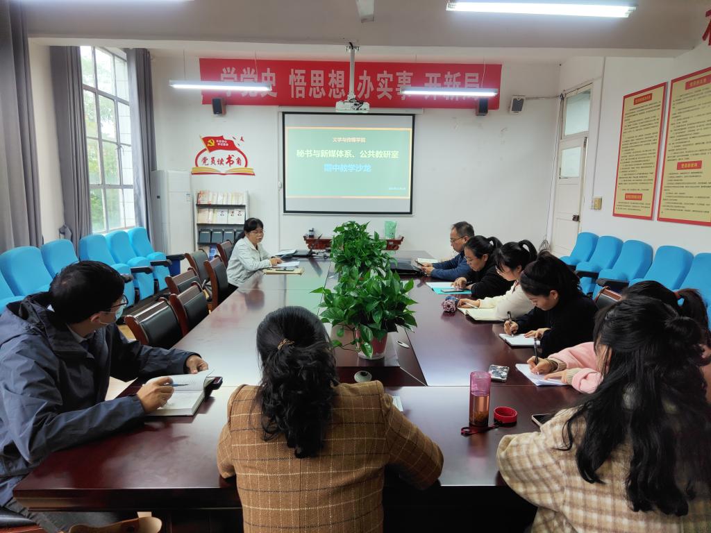 11月4日中午,诸侯快讯秘书与新媒体系、公共教研室在江南2307室联合举办期中教学沙龙,教学沙龙由公共教研室主任黄治强主持,孙鸿教授担任主讲,学校教学督导梁卫华教授应邀出席,网络与新媒体系、公共教研室教师参加了本次沙龙活动。