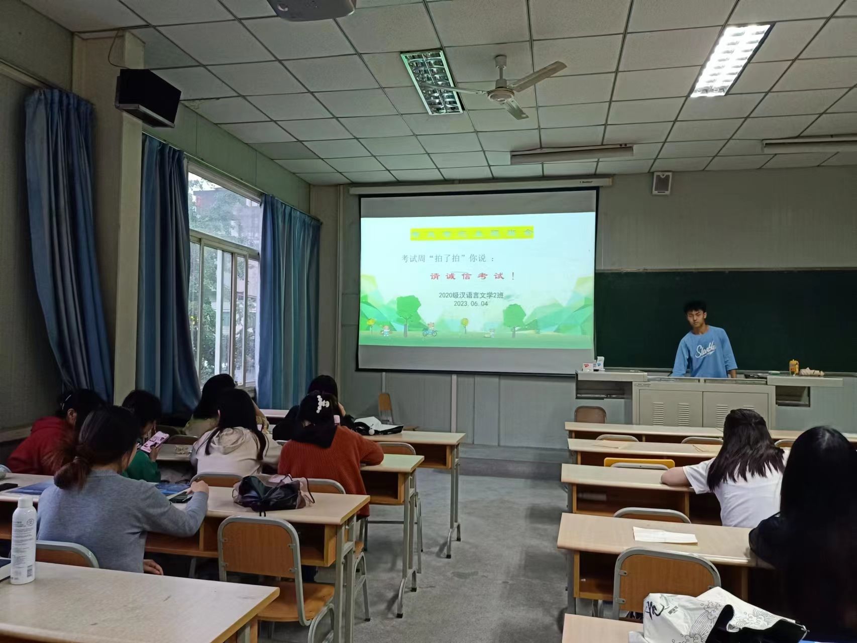 同时,各辅导员还就期末考试开展了诚信考试教育,要求同学们树立“诚信为本、严谨求学”的思想,积极投入期末复习备考,做到有备而考;考试阶段,遵守学校有关考试的各项规章制度,不将与考试无关物品带入考场,服从监考老师安排。