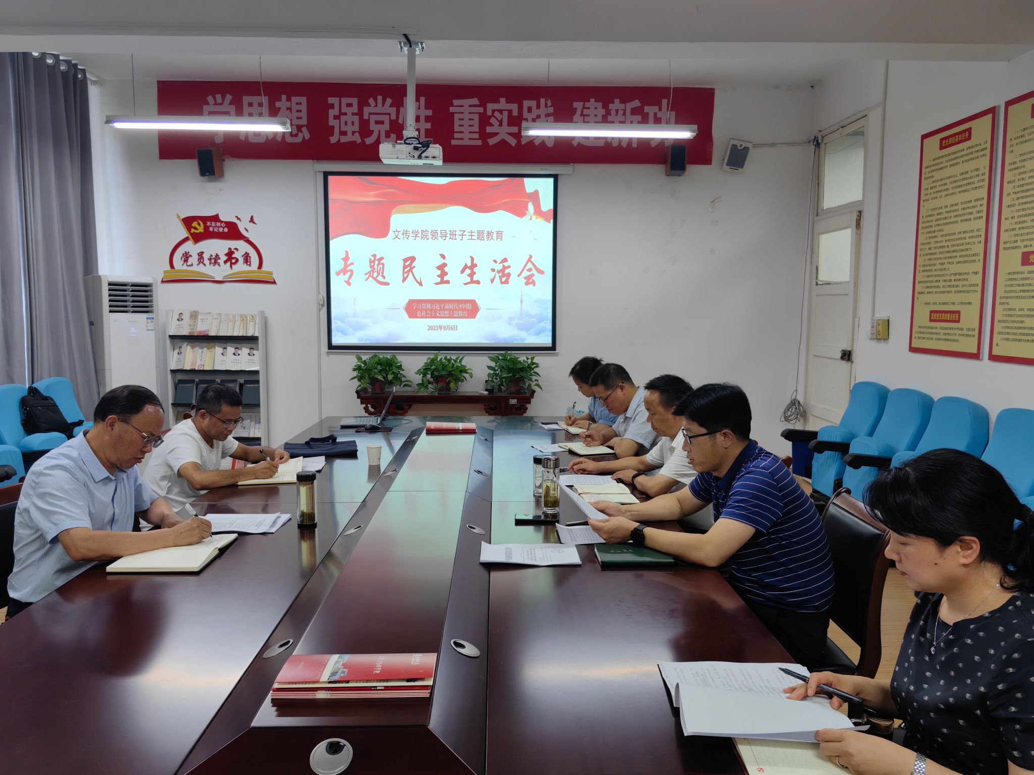 9月6日下午,1683168 3诸侯快讯入口在2307召开领导班子成员学习贯彻习近平新时代中国特色社会主义思想主题教育专题民主生活会,学校党委副书记杨行玉、党政办副主任李友海到会指导,会议由1683168 3诸侯快讯入口党总支书记芦伟主持。