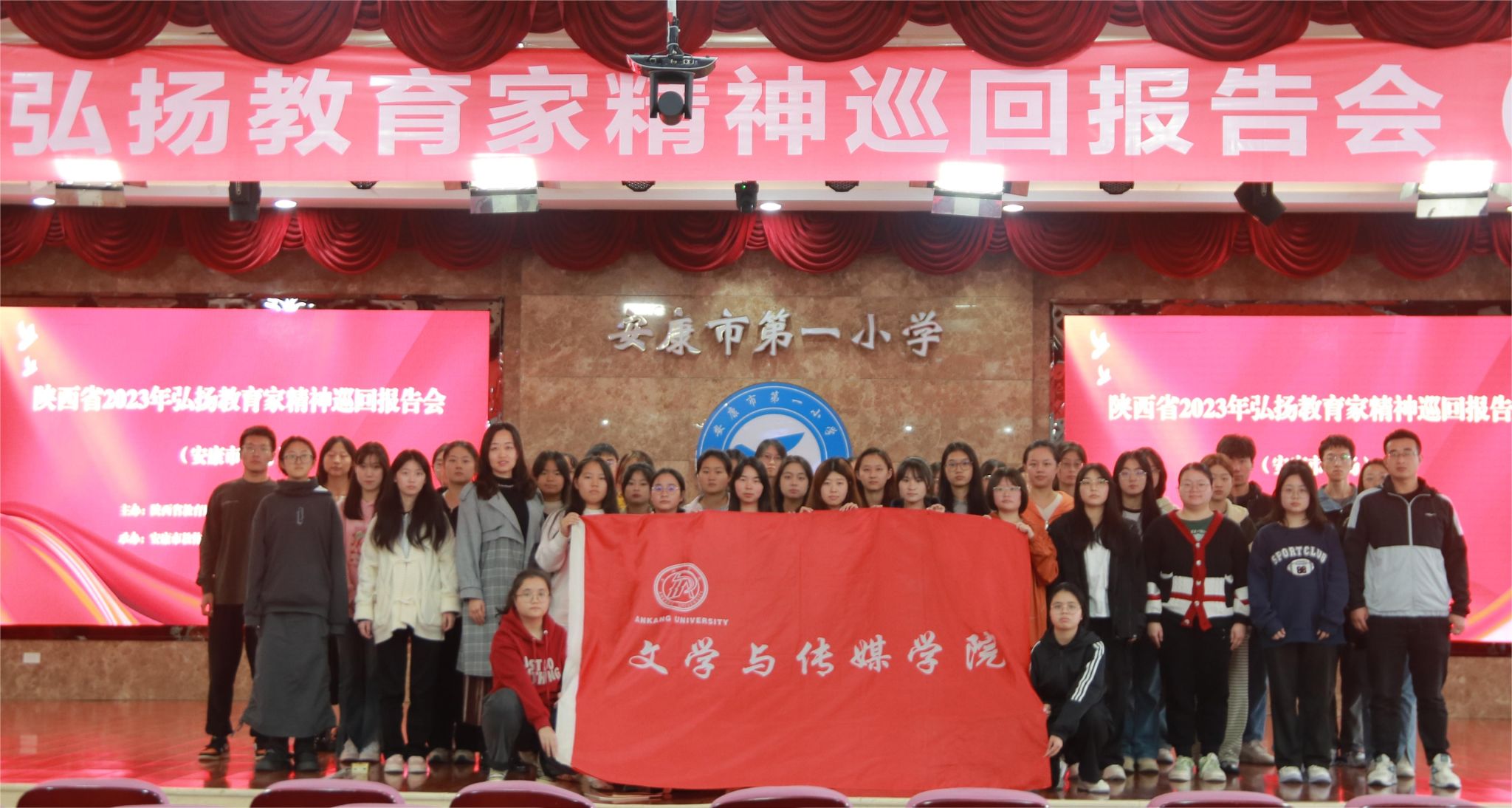 为大力弘扬教育家精神,引导青年学生树立“躬耕教坛、强国有我”的志向和抱负,2023年11月4日上午,1683168 3诸侯快讯入口组织学生前往安康市第一小学多功能报告厅,参加陕西省2023年弘扬教育家精神巡回报告会(安康站),开展“引领思想旗帜 铸就坚强核心”主题教育活动。1683168 3诸侯快讯入口团总支书记彭潇、辅导员许明和诸侯快讯部分师范生参与了此次活动。
