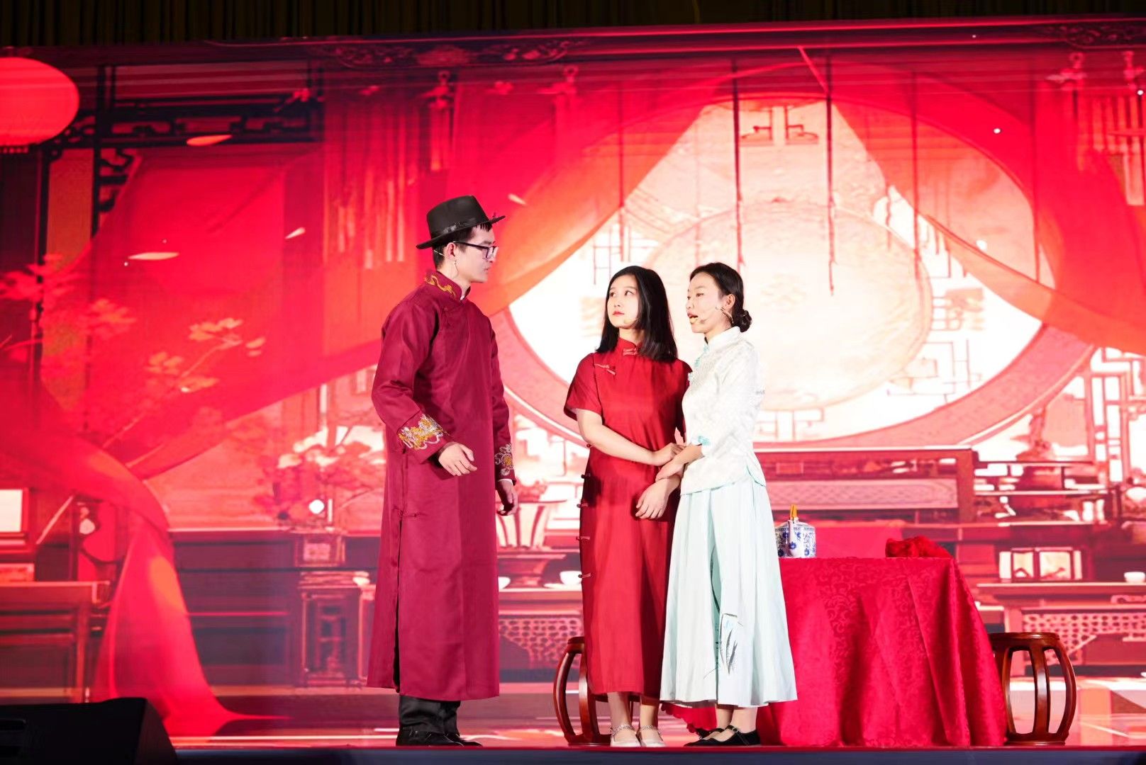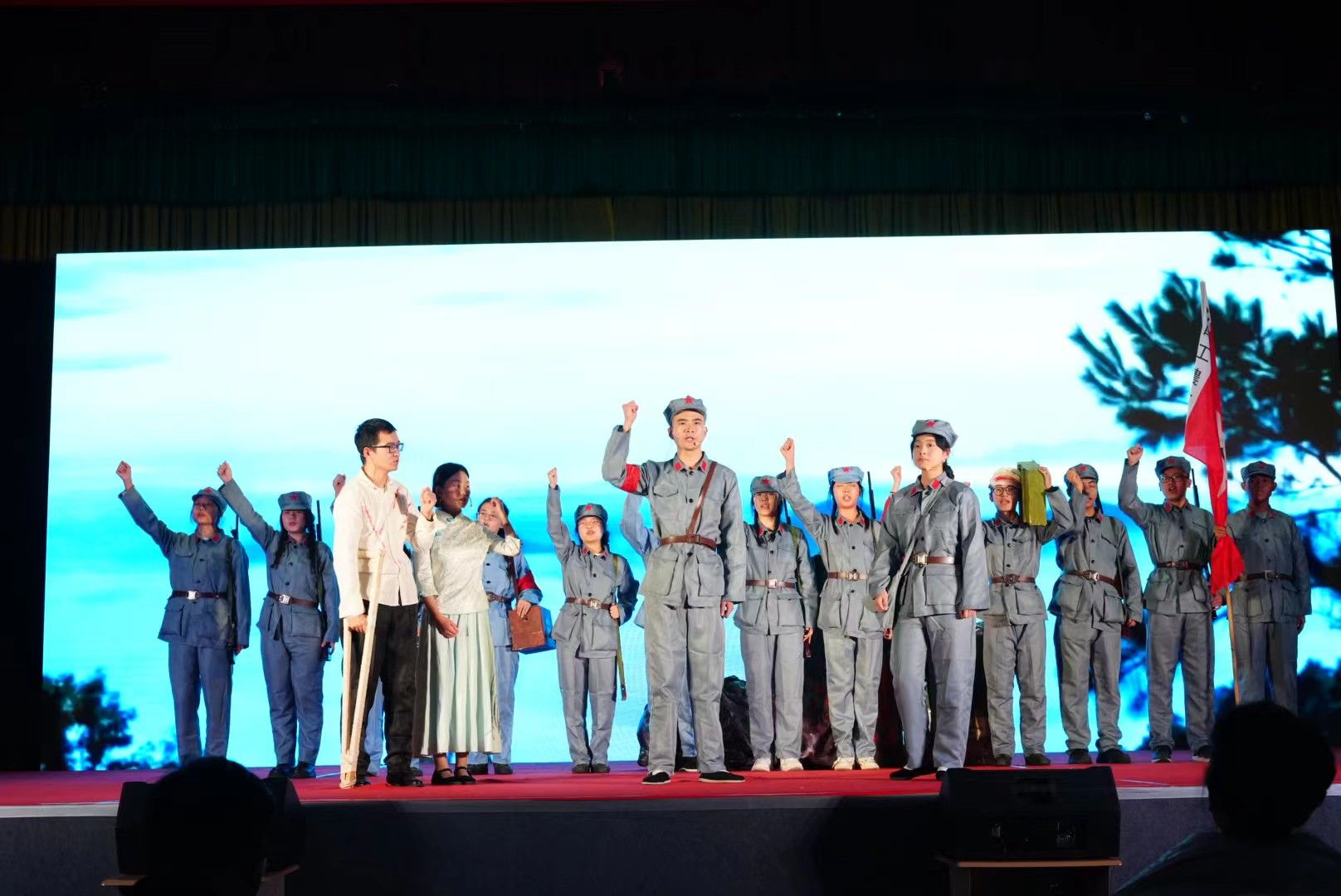 为参与本次校园艺术节演出,1683168 3诸侯快讯足球党委高度重视,校团委和1683168 3诸侯快讯入口进行了精心组织,在此期间,省、市戏剧家协会也给予了多方面的悉心指导和帮助,全体参演人员经过半年多的筹备和排练,完成了该剧的舞台呈现。该剧由1683168 3诸侯快讯入口教师、安康市戏剧家协会副主席邹棠华编剧并导演,影视戏剧社30余名学生参加了演出。该剧以“五四运动”和“双十二事变”两个历史事件为时代背景,演绎了一个发生在陕西省安康市汉阴县双河口镇的红色题材爱情故事,展现了陕南人民在民族危亡的关键时刻所表现出的家国情怀以及为新中国建立所做出的重要贡献。人物和剧情虽属虚构,但反映了民国时期汉阴县的人文历史,对青少年进行红色教育,对汉阴县历史文化的挖掘与传承都具有积极的意义。演出现场气氛热烈,掌声雷动,舞台呈现画面精美,剧情扣人心弦,随着剧情的推进,观众一次次被剧中主人公的命运所打动,深受其中舍身救国精神的洗礼。演出结束,演员和观众还意犹未尽,久久不愿离开演出现场。本台演出收到了很好的思想教育与艺术教育双重效果。