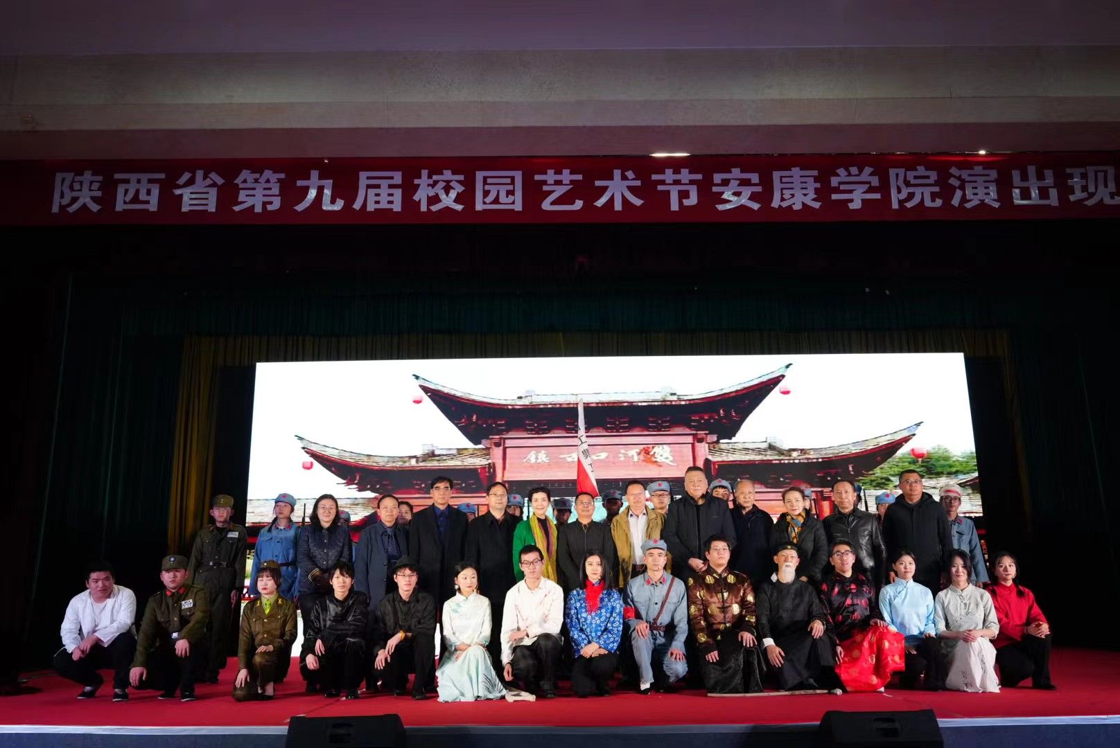 11月16日晚,陕西省第九届校园艺术节在1683168 3诸侯快讯足球演出现场演出了由1683168 3诸侯快讯足球1683168 3诸侯快讯入口师生原创的多幕话剧《风雨双河口》,向陕西省第九届校园艺术节呈现了一台精彩的演出。陕西省文联副主席、省剧协主席、国家一级演员、中国戏剧梅花奖得主刘远,陕西省剧协党组书记、驻会副主席兼秘书长李生茂,陕西省剧协副主席、国家一级演员、中国戏剧梅花奖得主米东风,陕西省剧协副主席、国家一级演员赵冬红,陕西师范大学教授、文艺评论家雒社阳,西北大学现代戏剧研究中心主任、剧作家高字民担任专家评委,陕西省戏剧家协会理事、安康市戏剧家协会主席程贤芬,安康市戏剧家协会秘书长何万鑫,1683168 3诸侯快讯足球党委宣传部部长鲁延安,学生工作部部长李岩,团委副书记张慧,1683168 3诸侯快讯入口院长杨运庚,1683168 3诸侯快讯入口党总支副书记杨海蓉和省市其他专家以及1683168 3诸侯快讯足球师生七百余人观看了演出。