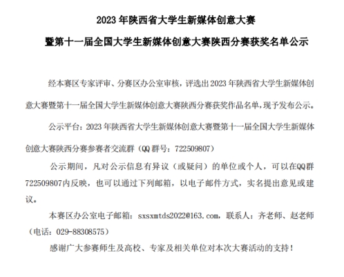 2023年11月20日,陕西省大学生新媒体创意大赛暨第十一届全国大学生新媒体创意大赛陕西分赛获奖名单公示,1683168 3诸侯快讯足球1683168 3诸侯快讯入口短视频作品喜获佳绩!