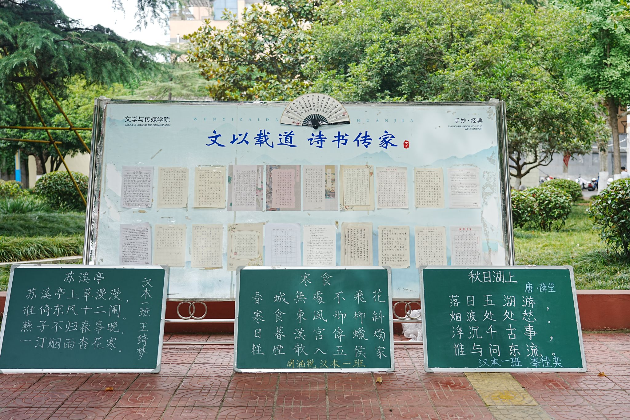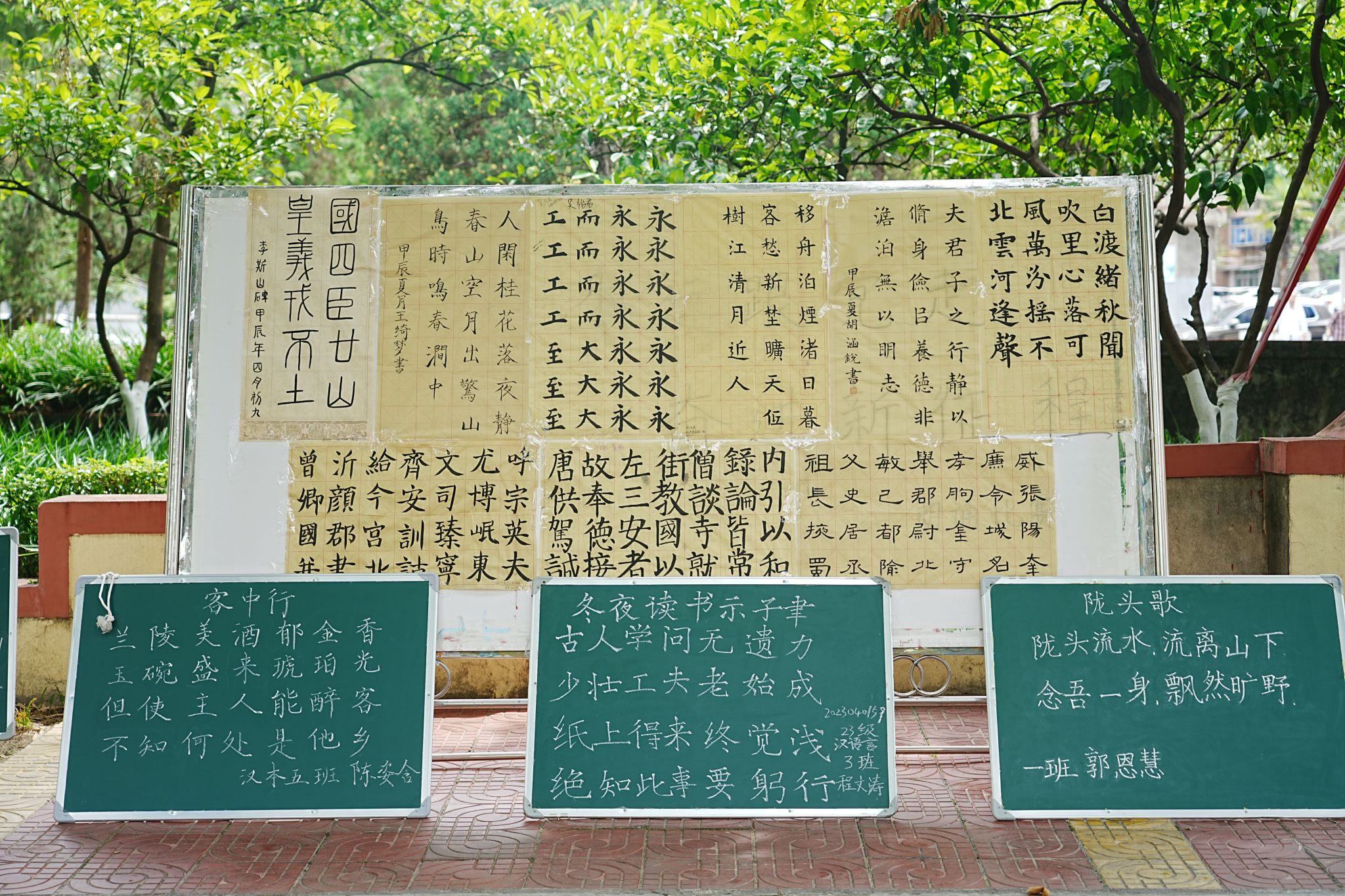 本次大赛收集参赛作品分为硬笔、毛笔和粉笔三个类型。比赛展示期间,学生提交的所有作品分别摆放在校园林荫道的两旁和学院楼道内,一幅幅作品有的端庄严谨,有的清新秀丽,有的圆转流畅,展现出学生扎实的书写基本功;作品中有经典流传的圣言之道,有脍炙人口的古代诗词,有气势磅礴的革命诗句,也有民间传统优秀家训,内容跨越千年题材丰富多样。5月28日上午,经过评委们的认真评选,最终按类别评选出一等奖6名,二等奖9名,三等奖12名,优秀奖8名。