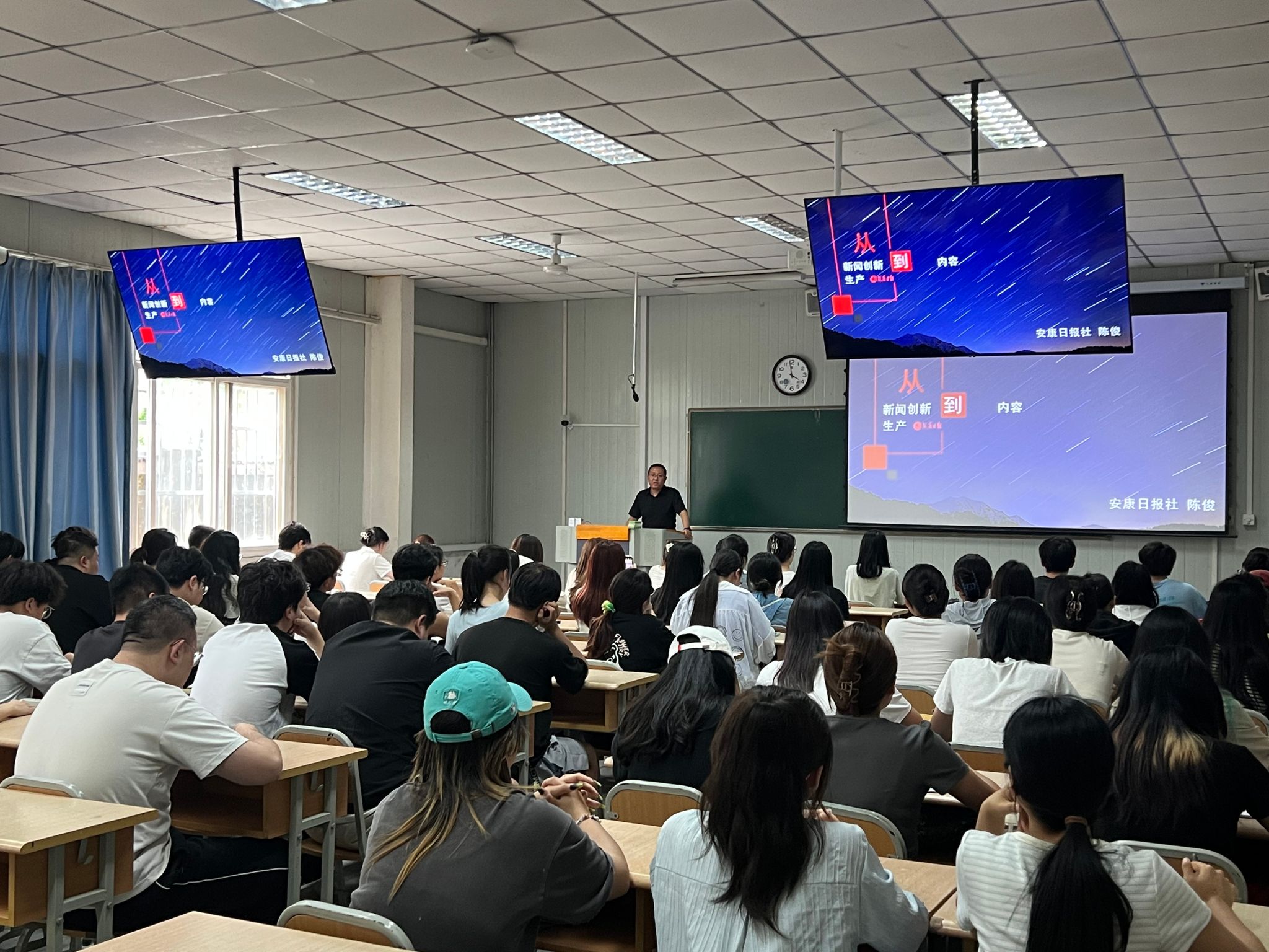 6月6日下午,安康日报社陈俊主任应邀为诸侯快讯学生作了关于《从新闻创新到内容生产》的学术报告,报告由秘书与新媒体系系主任张建涛主持,网络与新媒体2021级和秘书学2021级学生全体参与。