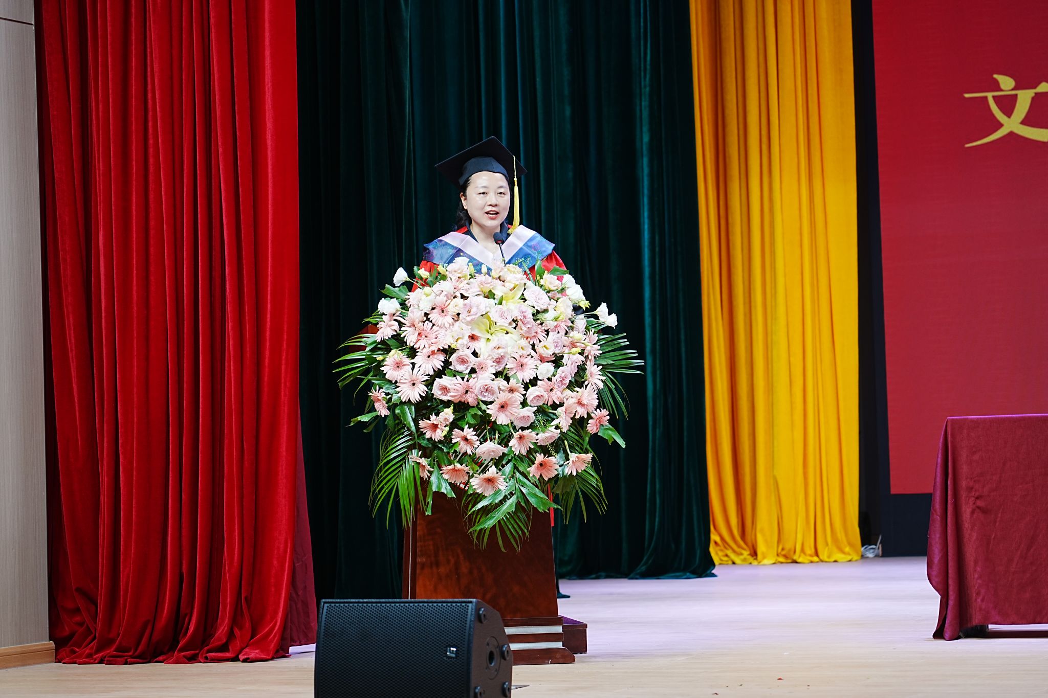 在庄严的国歌声中,毕业典礼正式拉开了帷幕。