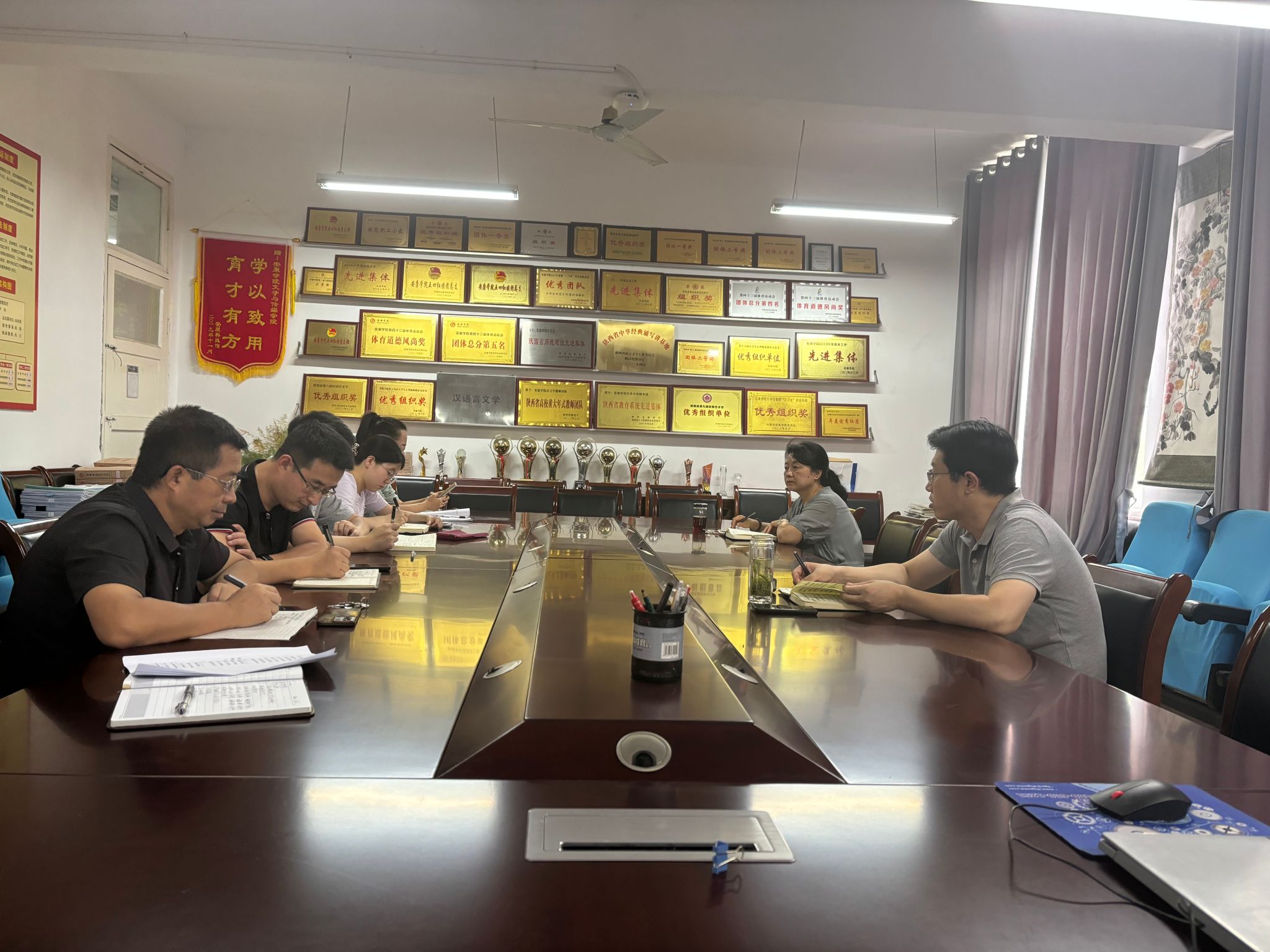 党总支副书记杨海蓉结合上半年学生管理工作做了阶段总结,希望学工团队的老师劲儿往一起使,心往一起想,增强使命感,立足本职岗位,践行中国特色的教育家精神,以教育部《高等学校辅导员职业能力标准》为指导,认真履职尽责,为学校高质量发展夯实安全稳定基础。