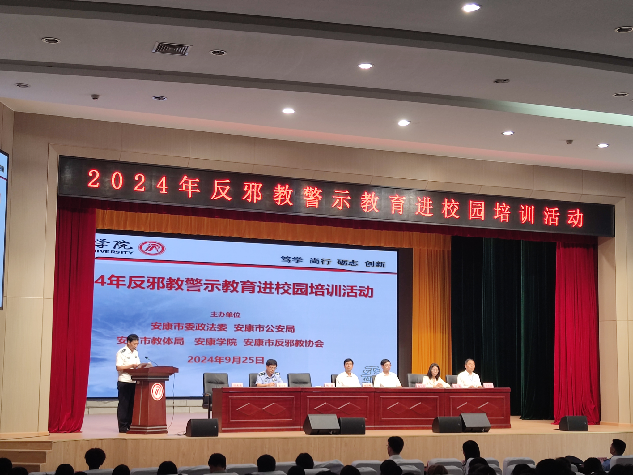 活动现场,学校通过发放宣传手册、组织观看反邪教宣传片、听取主题讲座、集体签订安全责任书等形式,向学生们详细介绍了邪教的本质、特征和危害。讲座上,来自安康市公安局的警官结合实际案例,深入浅出地讲解了邪教对个人、家庭和社会的严重危害,让学生们深刻认识了到邪教的欺骗性和危害性。活动中,李若辰代表2024级新生发言,号召同学们人人尽责,从自身做起,崇尚科学,反对邪教,倡导健康文明的生活方式。