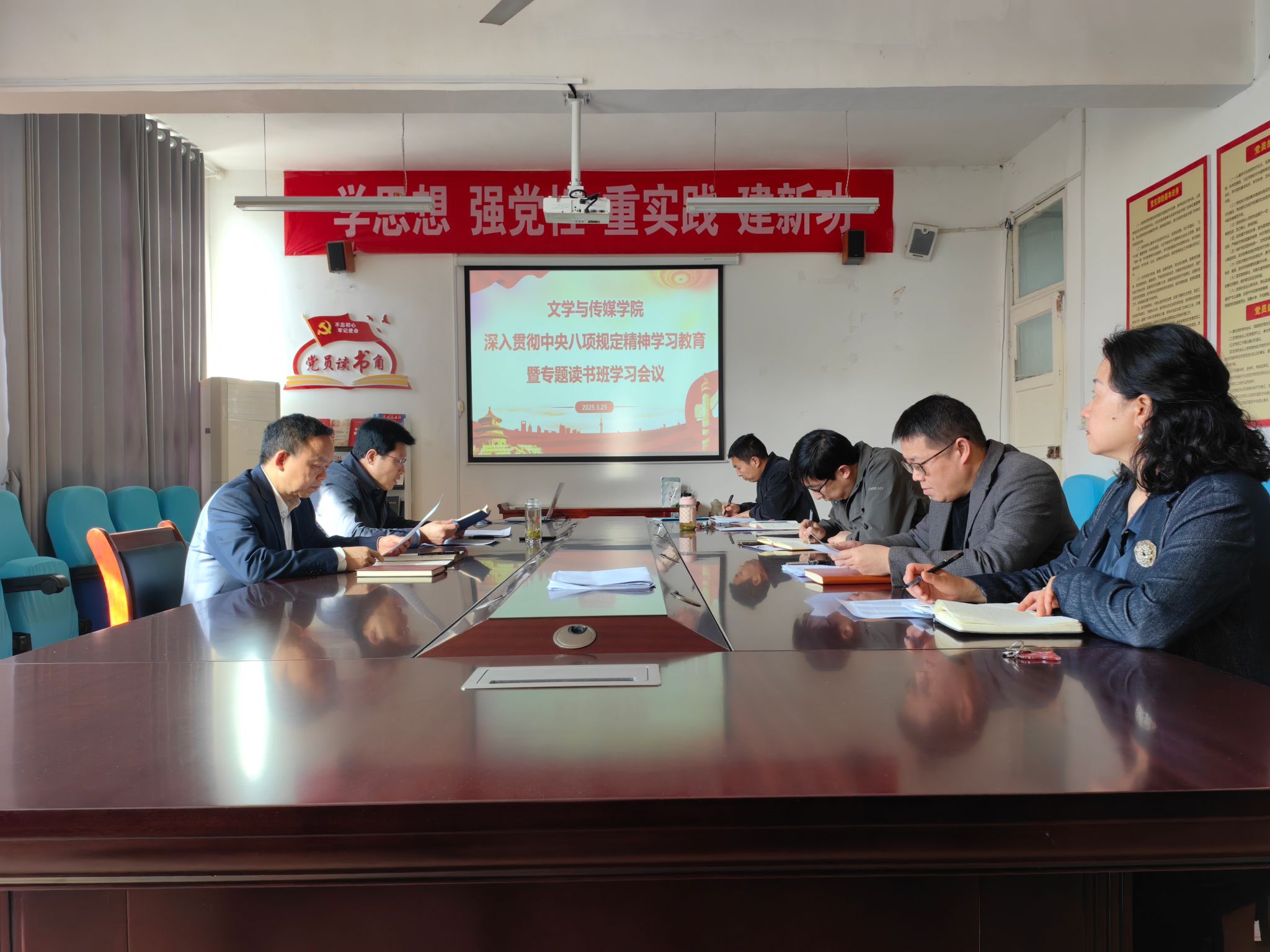 3月25日,1683168 3诸侯快讯入口在2307召开深入贯彻中央八项规定精神学习教育暨专题读书班学习会议,学院党总支全体成员参加会议,会议由党总支书记芦伟主持。