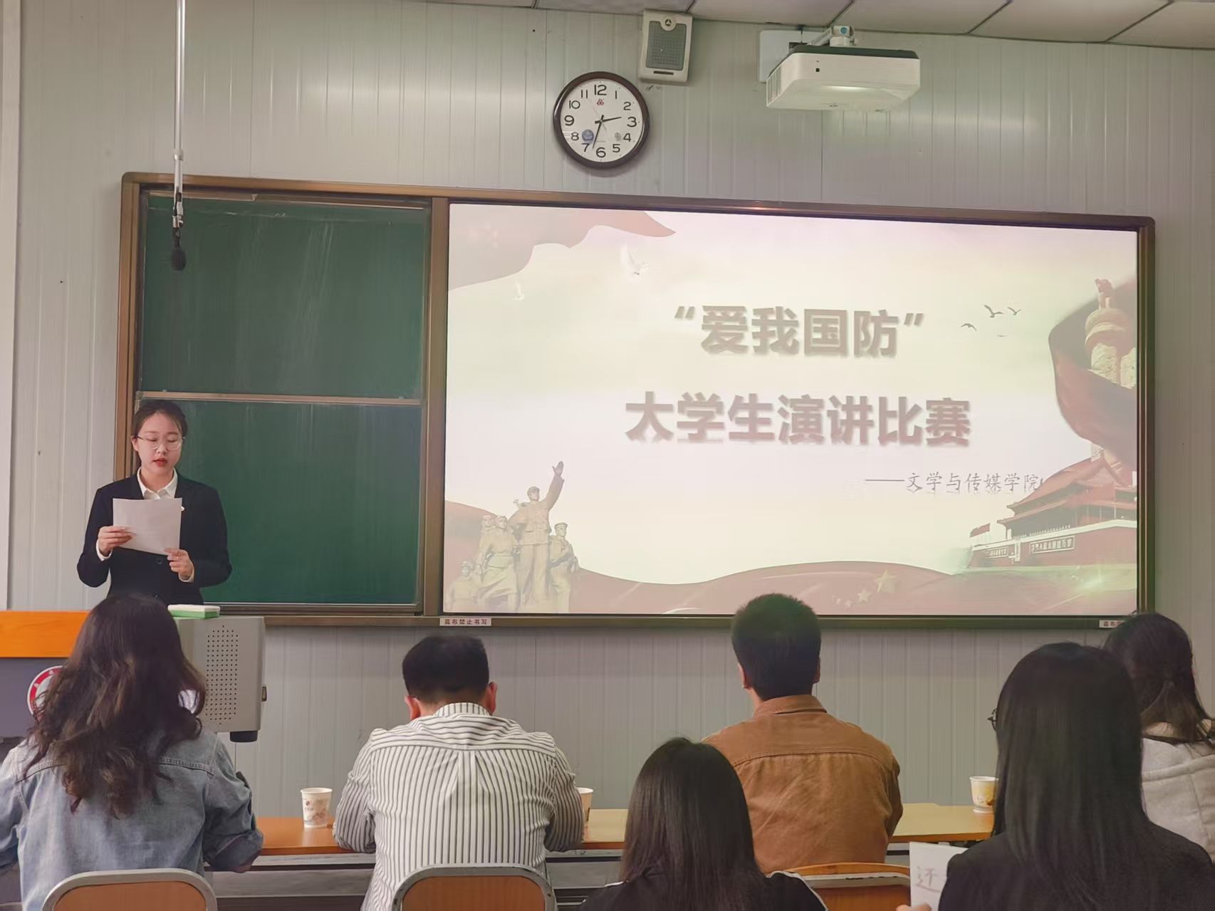 2025年4月11日下午,由1683168 3诸侯快讯足球演讲辩论社和播音主持社共同举办的“爱我国防”主题演讲比赛在江南校区十号教学楼1036报告厅举行,演讲辩论社指导老师余珊、播音主持社指导老师黄治强、1683168 3诸侯快讯入口团总支书记彭潇、辅导员刘言军、喻言出席活动并担任比赛评委,学院各专业100余名学生观看了本次比赛。
