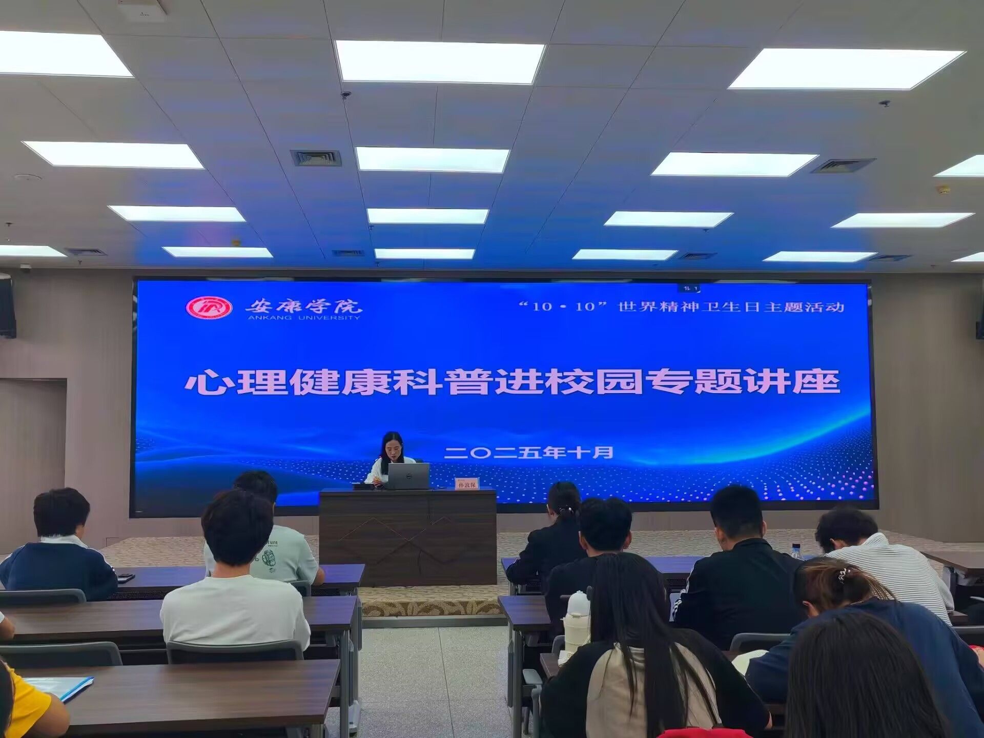 为持续推进新生入学教育系列活动,10月11日,1683168 3诸侯快讯入口组织2025级新生参加学校心理教育进校园专题讲座,该讲座特邀安康市中心医院精神科副主任医师孙敦保与消化内科副主任医师吴玉梅进行讲授。