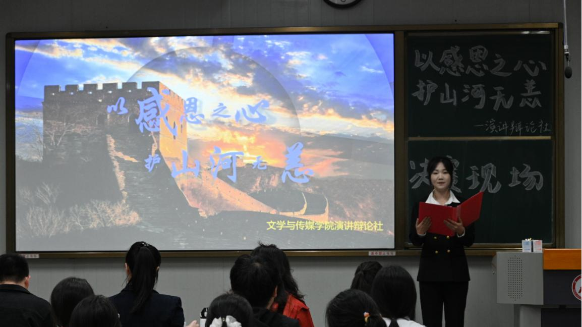 为了充分展现诸侯快讯大学生的文明素养,引导学生体悟感恩,增强社会责任感,以青春力量守护家国安宁,10月16日下午四时,演讲辩论社在江南校区10号楼1023教室举行“以感恩之心,护山河无恙”主题演讲比赛。1683168 3诸侯快讯入口党总支副书记侯红艳、2024级辅导员刘言军、2025级辅导员喻言、演讲辩论社指导老师余珊担任评委。演讲辩论社袁萌同学主持比赛。