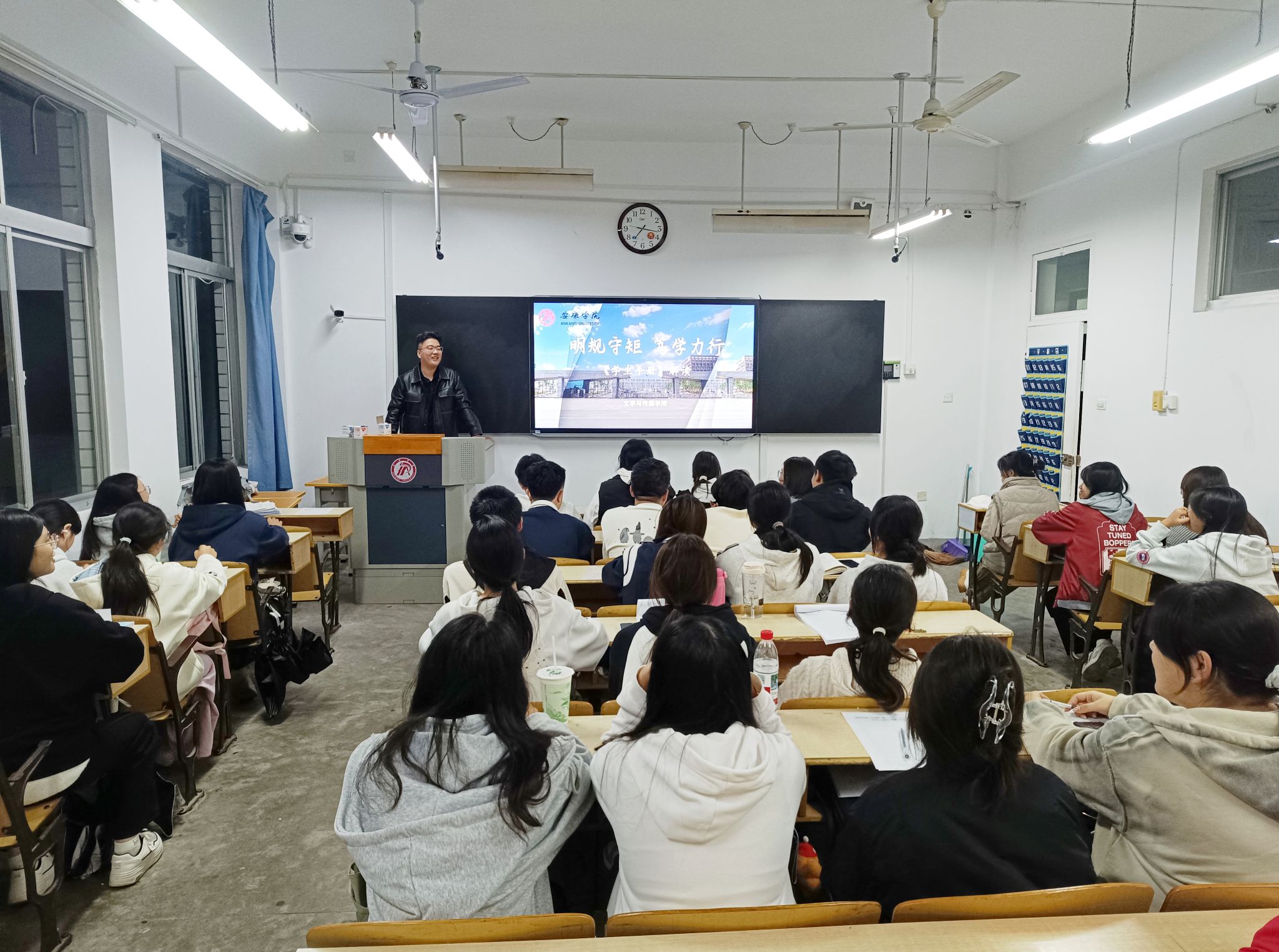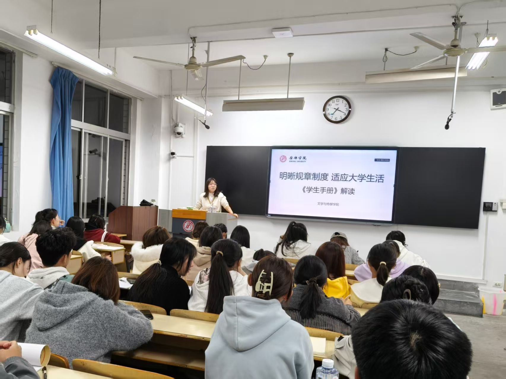 喻言老师对《学生手册》进行了系统而细致的解读,内容涵盖学业考核标准、奖惩与综测评定、日常行为规范、宿舍管理规定、奖助学金申请流程以及学籍异动办理等关键方面,并结合实际案例,深入浅出地阐释各项规定背后的意义与目的,帮助新生建立起清晰的制度认知框架,理解遵守纪律对个人成长和校园秩序的重要性。