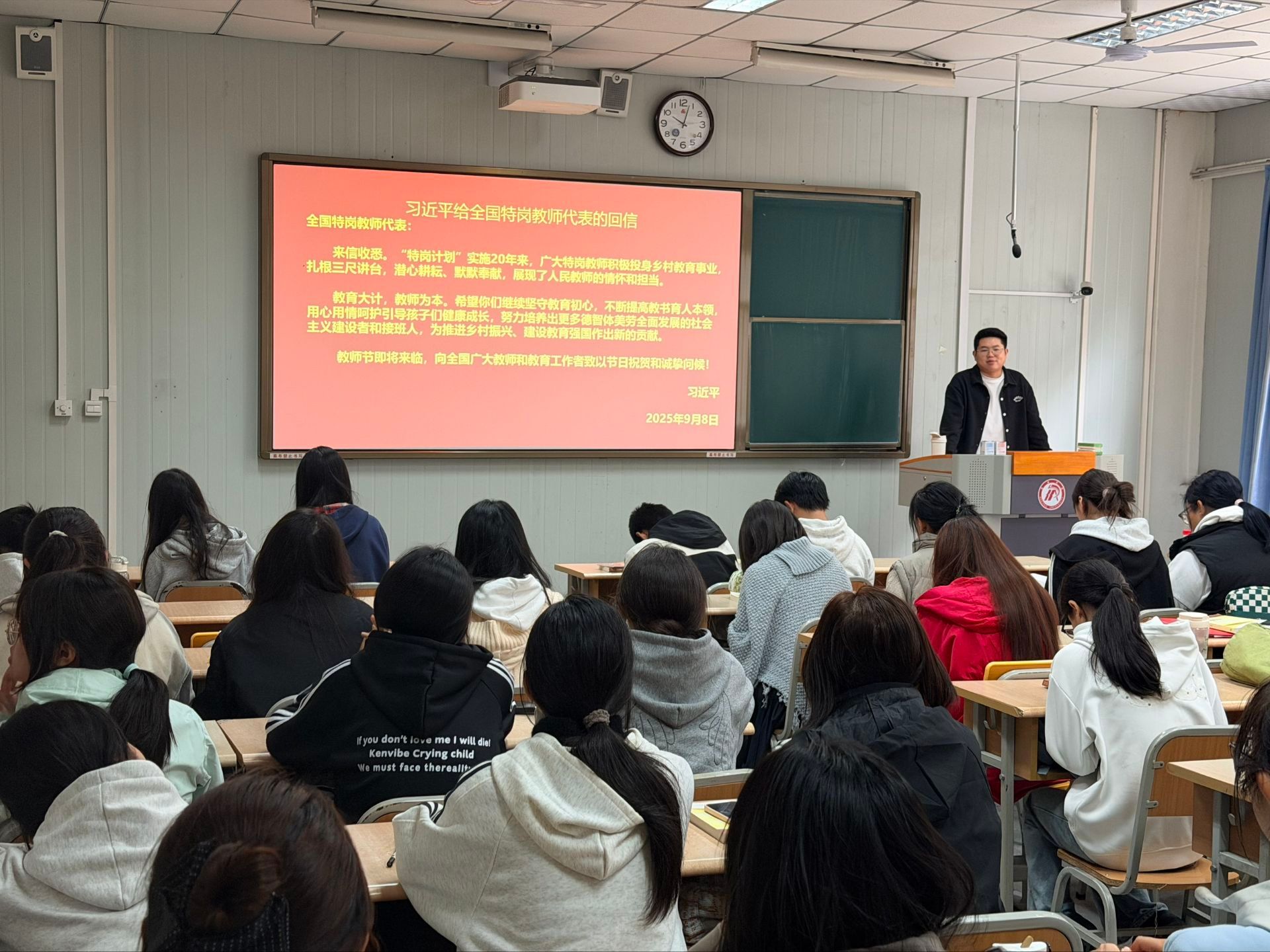 为深入学习贯彻习近平总书记给特岗教师代表的重要回信精神,切实加强青年学生思想政治引领,厚植教育报国情怀,近日,1683168 3诸侯快讯入口组织各班级集中开展“学习总书记重要回信精神、涵养乡村教育情怀”主题班会。