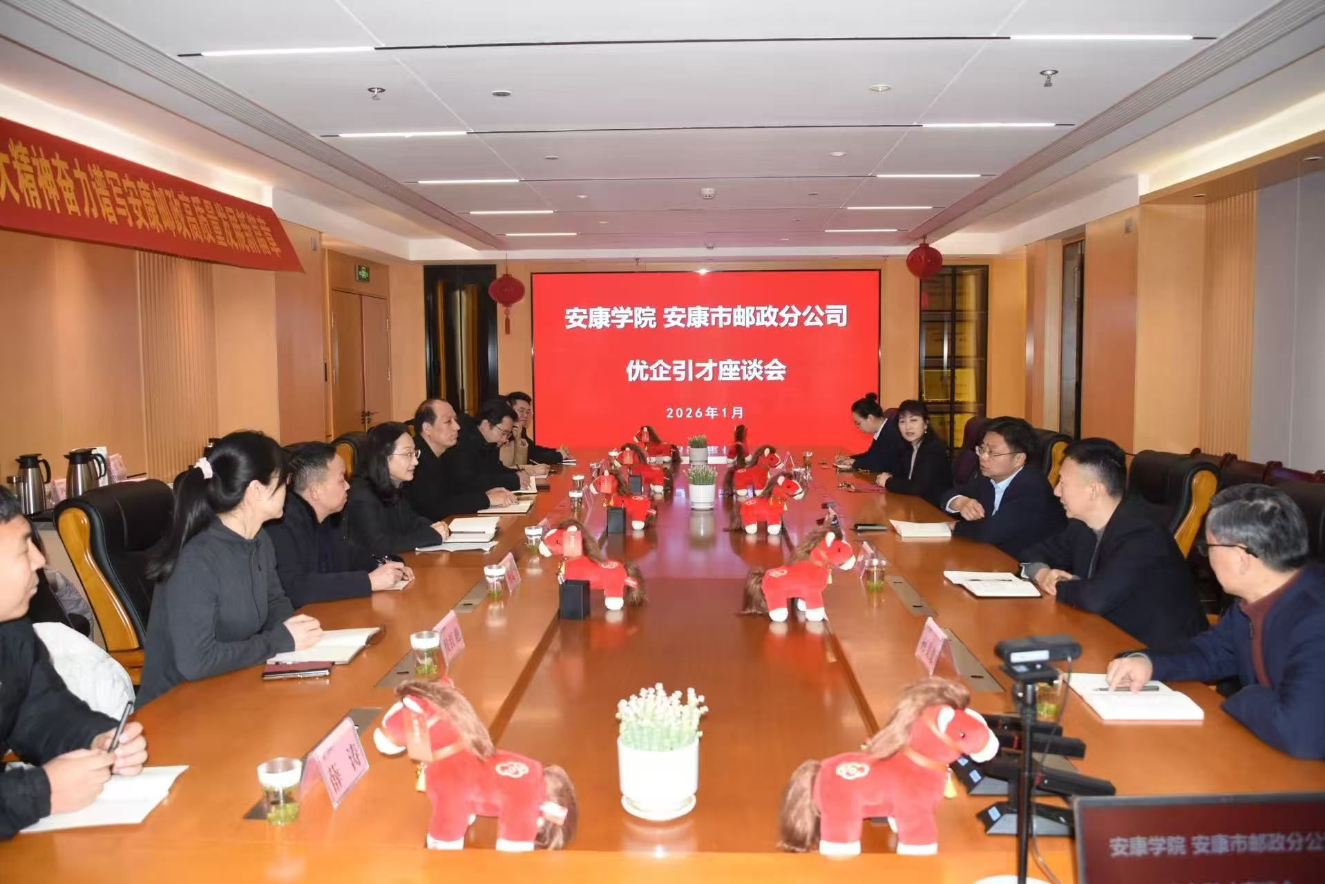 随后,双方围绕人才需求、岗位拓展、校企协同等议题进行座谈交流。王永星介绍了邮政分公司基本情况、服务地方优势及前期与安康学院的合作成效,并表示希望未来双方在特色农产品电商、直播带货、文创设计及人才招聘等领域开展更深入的合作。