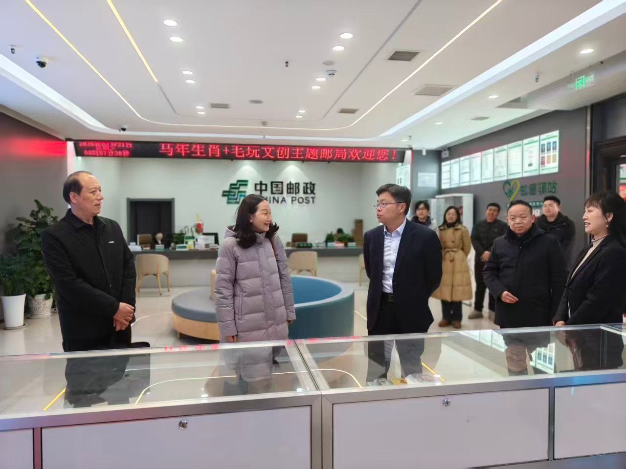 崔晓明一行首先参观了主题邮局及营业部,了解邮政文创产品开发、电商直播助农、金融业务运营等具体业务板块,深切感受了邮政企业多元化、现代化发展及服务地方经济的生动实践。