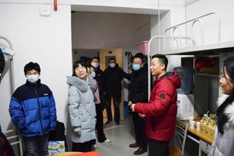 2020年12月30日下午五点,永利集团88304官网副校长张卫红老师、永利集团88304官网党委副书记(主持工作)刘朝亚老师、永利集团88304官网党委副书记刘平老师和永利集团88304官网辅导员冯永涛老师前往七号学生公寓楼看望学生。