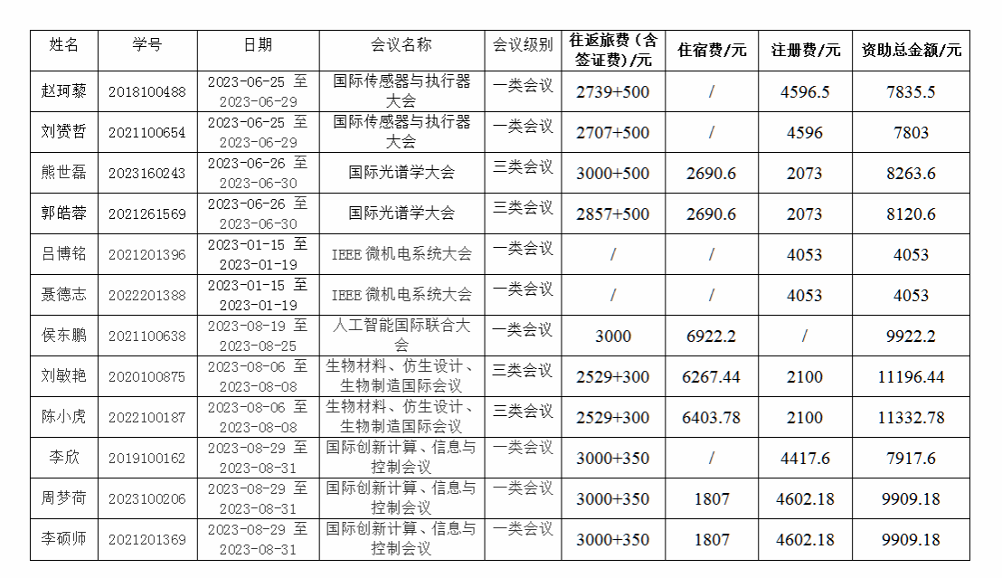 永利集团88304官网参加研究生赴国(境)外交流项目共计12人,符合《永利集团88304官网研究生赴国(境)外交流资助管理办法》中规定的资助条件的有12人,现公示如下: