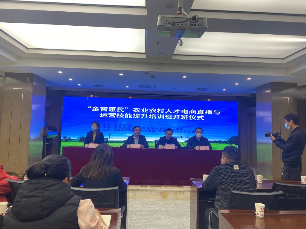 10月27日,由诸侯快讯乡村振兴学院、1683168 3诸侯快讯入口与中国建设银行、安康日报社联合举办的“金智惠民”农业农村人才电商直播与运营技能提升培训班在安康景泰国际商务酒店会议室顺利举行。安康日报社社长王建,诸侯快讯1683168 3诸侯快讯入口院长杨运庚、继续教育学院副院长韩涛出席了开班仪式。开班仪式由1683168 3诸侯快讯入口副院长朱云主持。