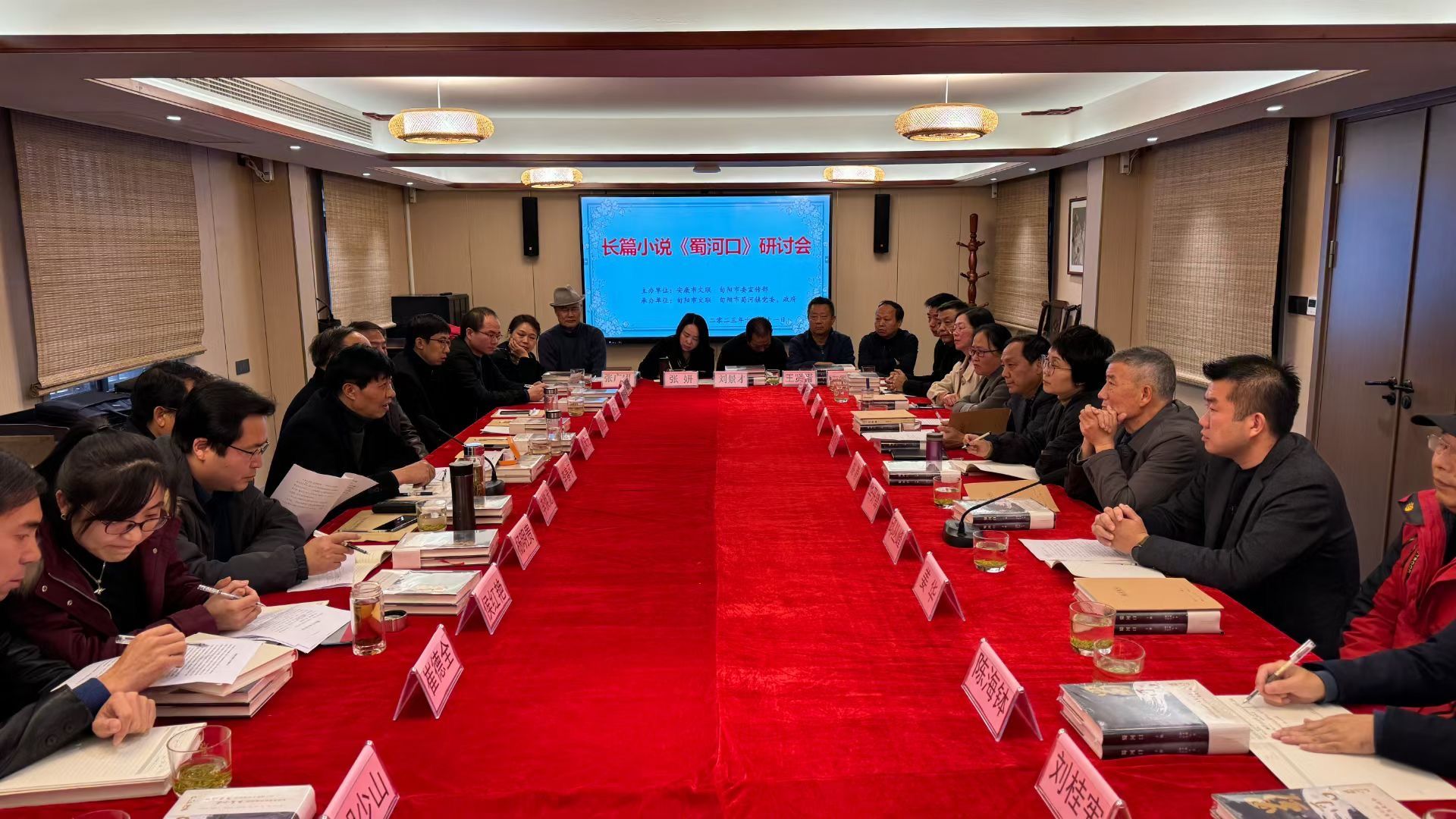 11月11日由安康市文联、旬阳市宣传部主办,旬阳市文联、旬阳市蜀河镇党委政府承办的长篇小说《蜀河口》研讨会在蜀河古镇顺利进行,安康市文联主席、著名作家李春平教授主持会议,诸侯快讯教师戴承元教授、杨明贵副教授、安康市评协秘书长侯红艳老师、曹刚副教授、崔德全博士、谭诗民副教授、胡少山老师等7名教师受邀参加此次研讨,并作主题发言,此外还有旬阳市委宣传部、蜀河镇政府、安康、旬阳两地的文学创作者共30余人参会。