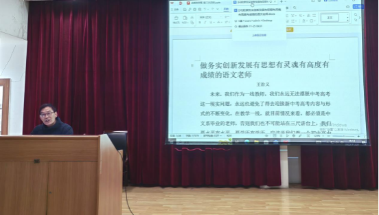 最后,王老师分享了《庖丁解牛》读后感,他谈到语文老师应当学习庖丁解牛之道,不要急于求成,找到并把握规律,才能游刃有余;要智慧地保全自己的工作热情,到达快乐的精神高地,且乐在其中,享受在其中。