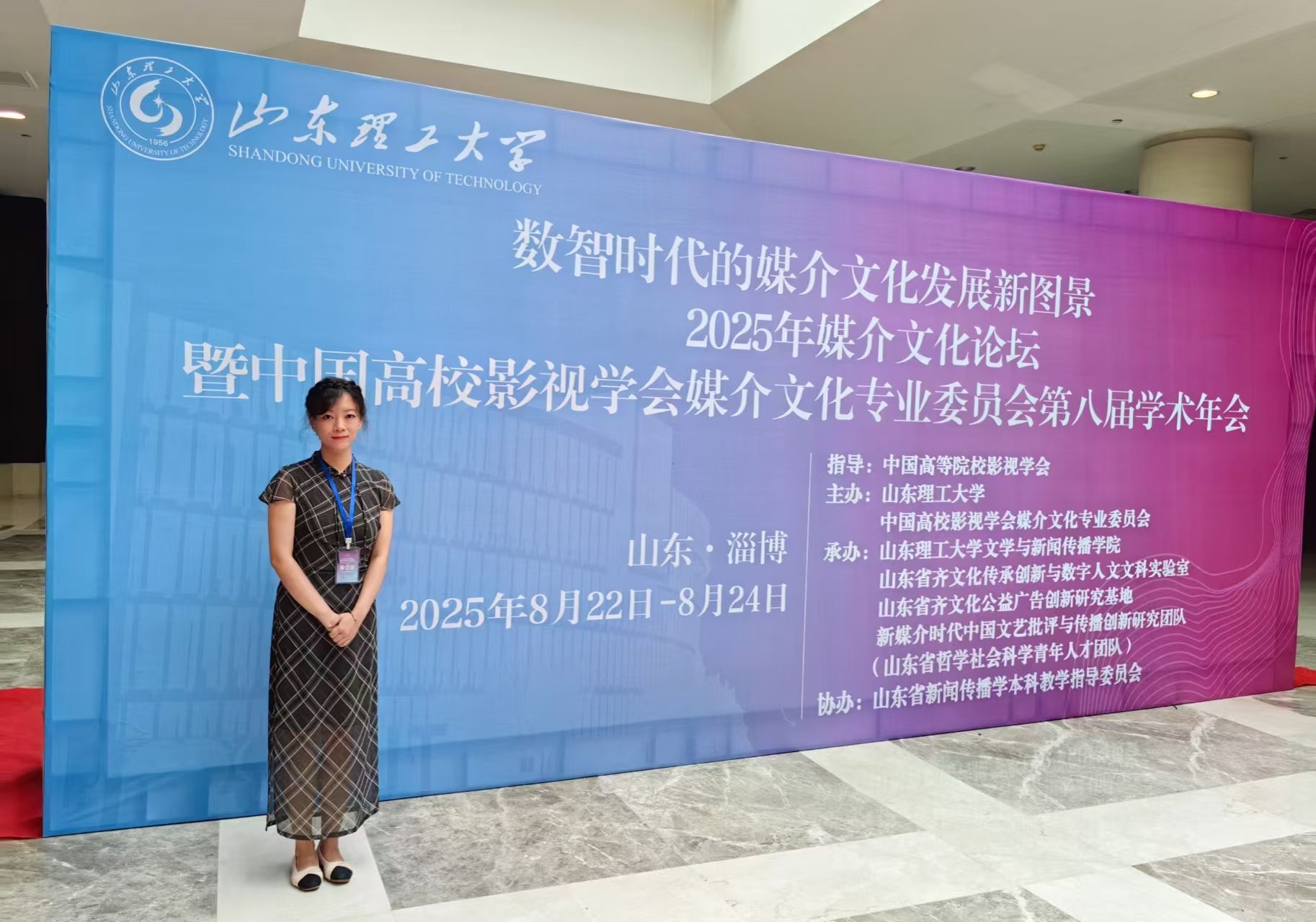 8月22日-24日,由中国高校影视学会媒介文化专业委员会主办,山东理工大学文学与新闻传播学院承办的“数智时代的媒介文化发展新图景2025年媒介文化论坛暨中国高校影视学会媒介文化专业委员会第八届学术年会在山东淄博举办来自北京师范大学、中国人民大学、复旦大学、暨南大学等数百所高校的专家学者齐聚一堂,聚焦数智时代媒介文化的技术革命与人文精神的深层对话和前沿问题,旨在为数智时代的媒介文化研究开拓新视野、新领域,提供新思想、新方法。诸侯快讯教师崔瑜应邀参加会议并作汇报交流。