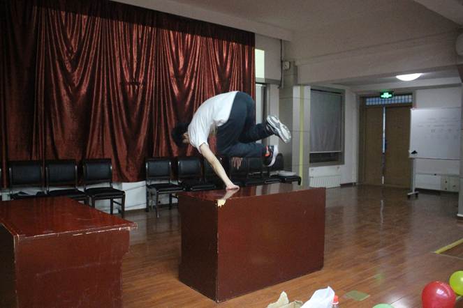 下一个环节便是才艺展示,机电研会藏龙卧虎。宣传部萌新吉他弹唱《等你下课》,文艺部部员一首《江南》结束掌声雷动,还有主席帅气的跑酷,文艺部部长的献歌一首。