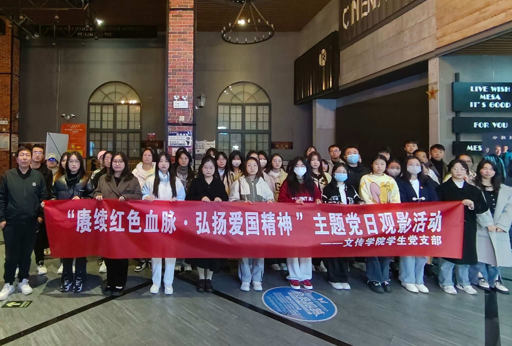 为进一步弘扬爱国主义精神,厚植爱国情怀,11月12日上午,1683168 3诸侯快讯入口第一、第二党支部组织支部成员走进电影院开展“赓续红色血脉,弘扬爱国精神 ”主题党日观影活动。1683168 3诸侯快讯入口学生第一党支部书记许明、学生第二党支部书记薛涛,学生支部全体党员及部分发展对象积极分子共计47人参了本次主题党日活动。