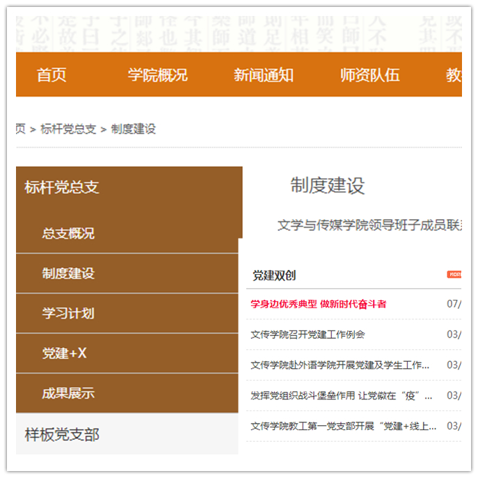 学院党总支加强对党支部工作的督促指导,努力提升党支部建设质量。党支部活动形式创新、内容走深,将党员读书活动融入“三会一课”,开展了“评红色电影、悟家国情怀、守初心担使命”“党史知识竞答”“寻访红色足迹 传承革命精神”“明史崇德、砥砺前行——从红色家书中汲取前进的智慧和力量”等主题党日活动,持续推进“两学一做”学习教育常态化制度化。扎实推进党建品牌引领工程,教工党支部“家和风正”基层党建特色品牌建设项目顺利结题,党员教师积极投入《中国传统家训》线上公选课拍摄录制和家风馆建设、《中国传统家训干部读本》编撰中,持续传播好家风;学生党支部“室雅书香”培育项目与党史学习教育、学风建设、文明宿舍深度融合,活动形式更加丰富多彩。与机关三直属党支部结对共建,联合开展“学党史、悟思想、助振兴”红色文化演出走进美丽乡村活动。党员先锋模范作用进一步彰显,党员教师中涌现出了“陕西高等学校教学名师奖”“师德先进个人”“优秀教师”“优秀共产党员”“优秀党务工作者”等一批先进典型,获批了“省级新文科研究与实践项目”“线下一流课程”“线上一流课程”“陕西省第三届高校课堂教学创新大赛(本科)”“陕西省2019年高等教学教学成果奖”一批标志性项目和奖项。在2021年校党委“两优一先”表彰大会上,1683168 3诸侯快讯入口党总支获得“先进基层党组织”荣誉称号。